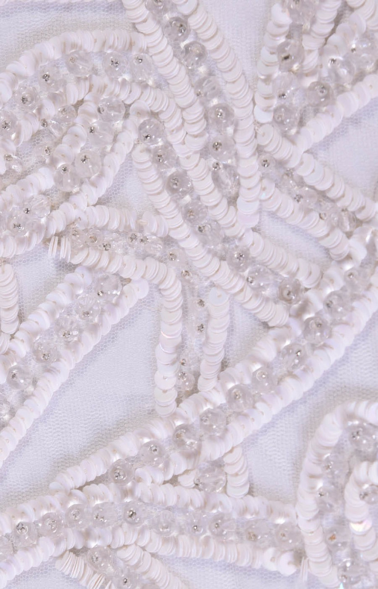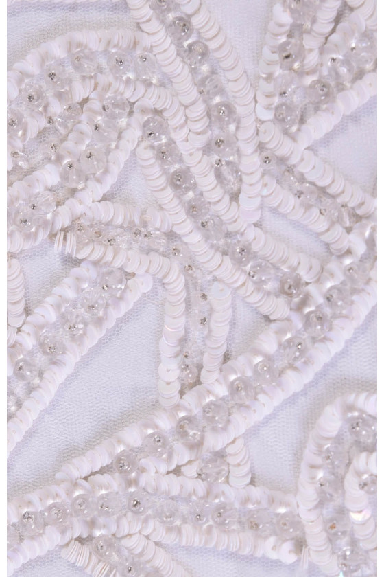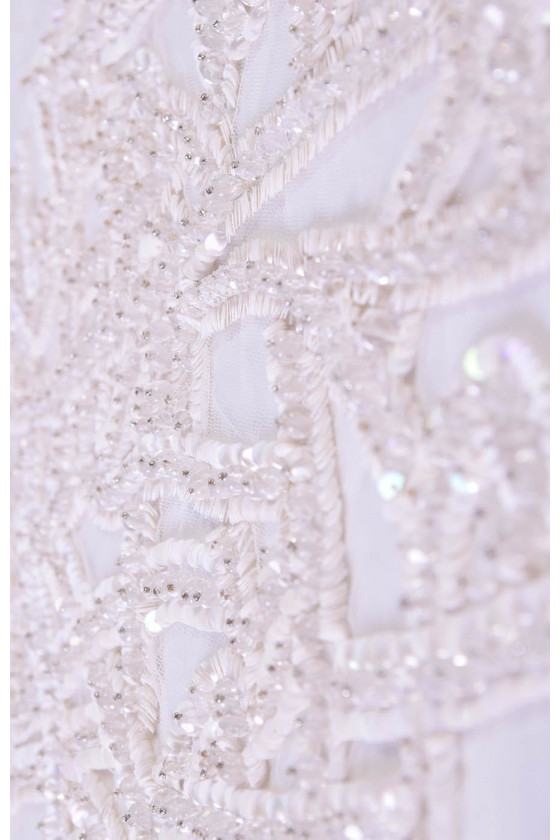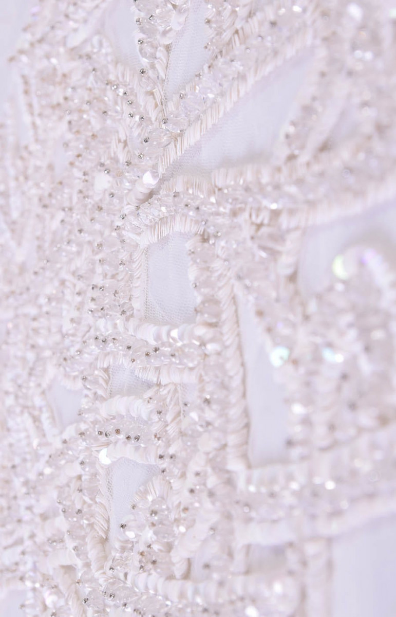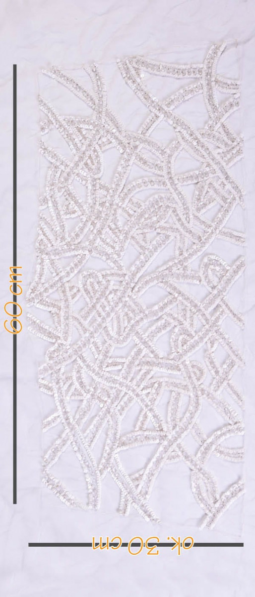 Krásná, bohatě zdobená nášivka určená pro korzet. Ideální pro svatební šaty.