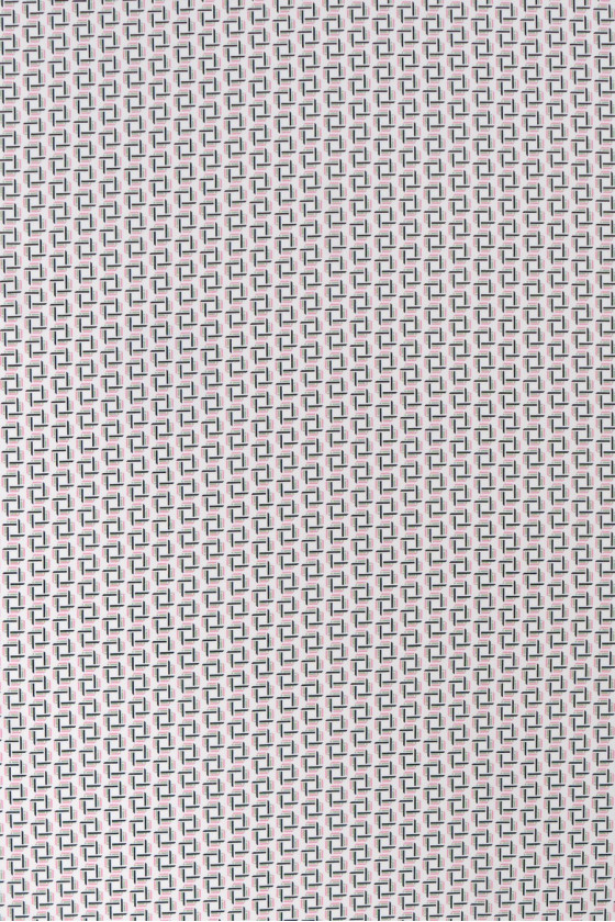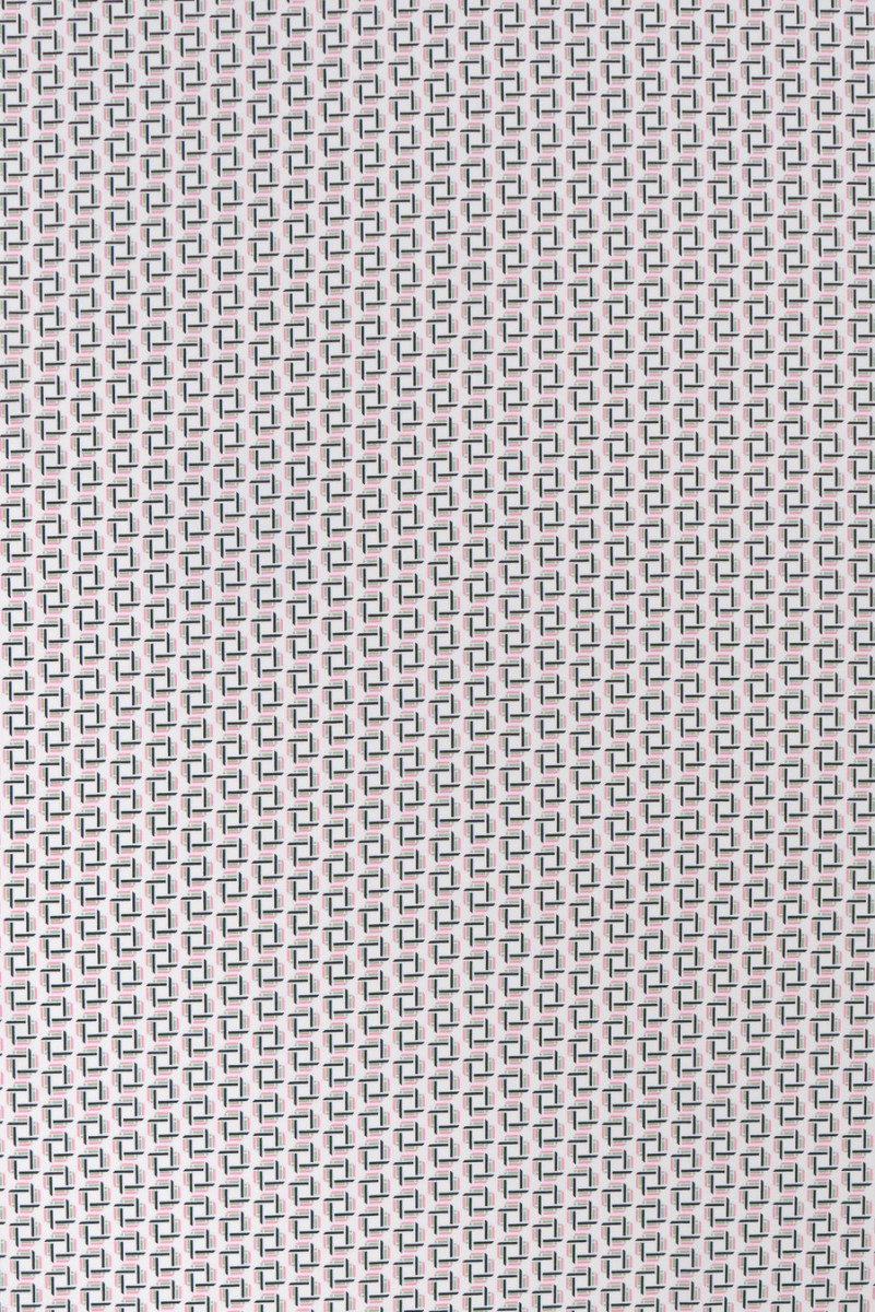 Italská, elastická bavlněná košile s malým geometrickým vzorem (1,5 cm) v černé barvě s růžovou a zelenou na krémovém pozadí.