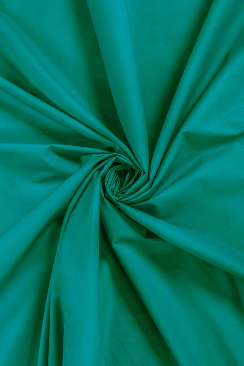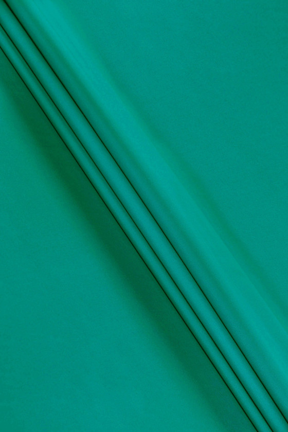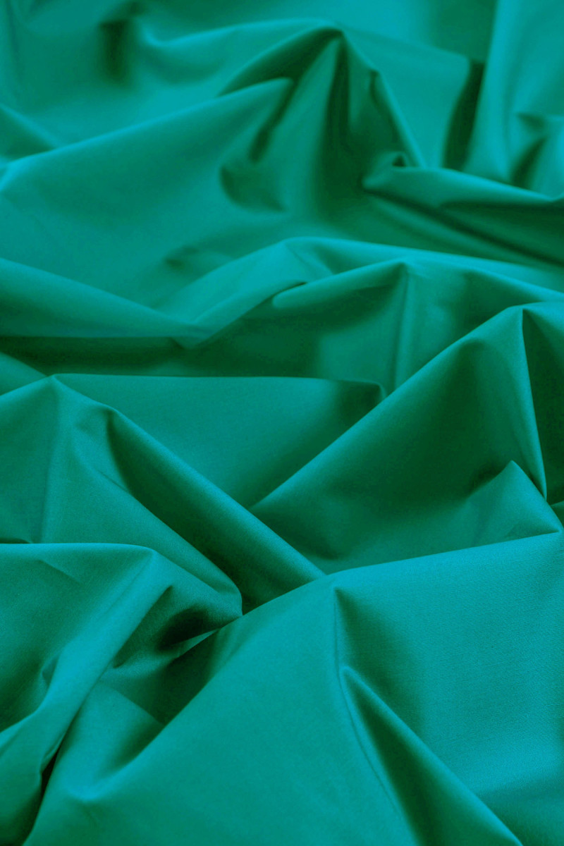 Italská bavlněná tkanina s přídavkem elastanu v barvě mořsky zelené. Elastická tkanina střední tloušťky a hladké, mírně lesklé vazby určená k šití šatů, sukně nebo kalhot. Přírodní tkanina velmi dobré kvality, přídavek elastanu usnadňuje používání a méně se mačká. Nenahraditelná látka na jaře a v létě.