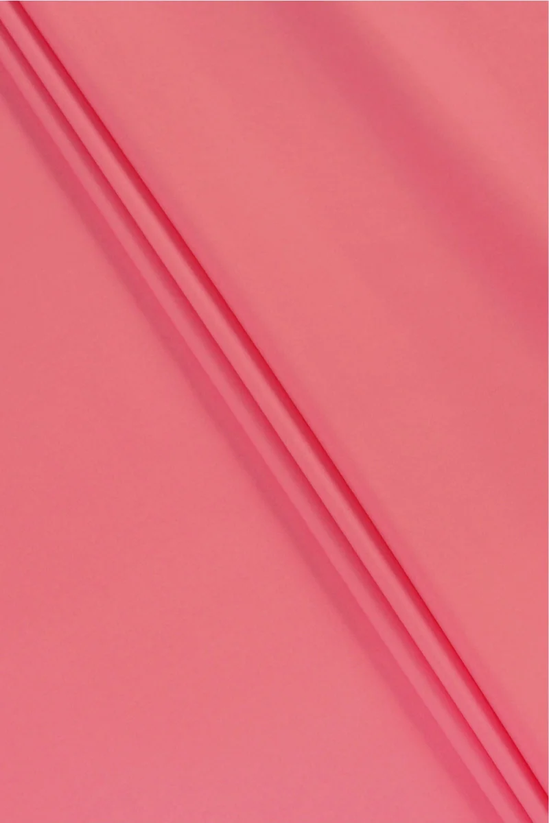 Italská košile bavlna, guma v barvě tlumeného korálu. Tenká, ale neprůhledná látka s hladkou vazbou určená pro šití košile, halenky nebo šatů. Přírodní tkanina velmi dobré kvality, díky přídavku elastanu je pohodlnější při používání a méně se mačká. Nenahraditelná látka na jaře a v létě.