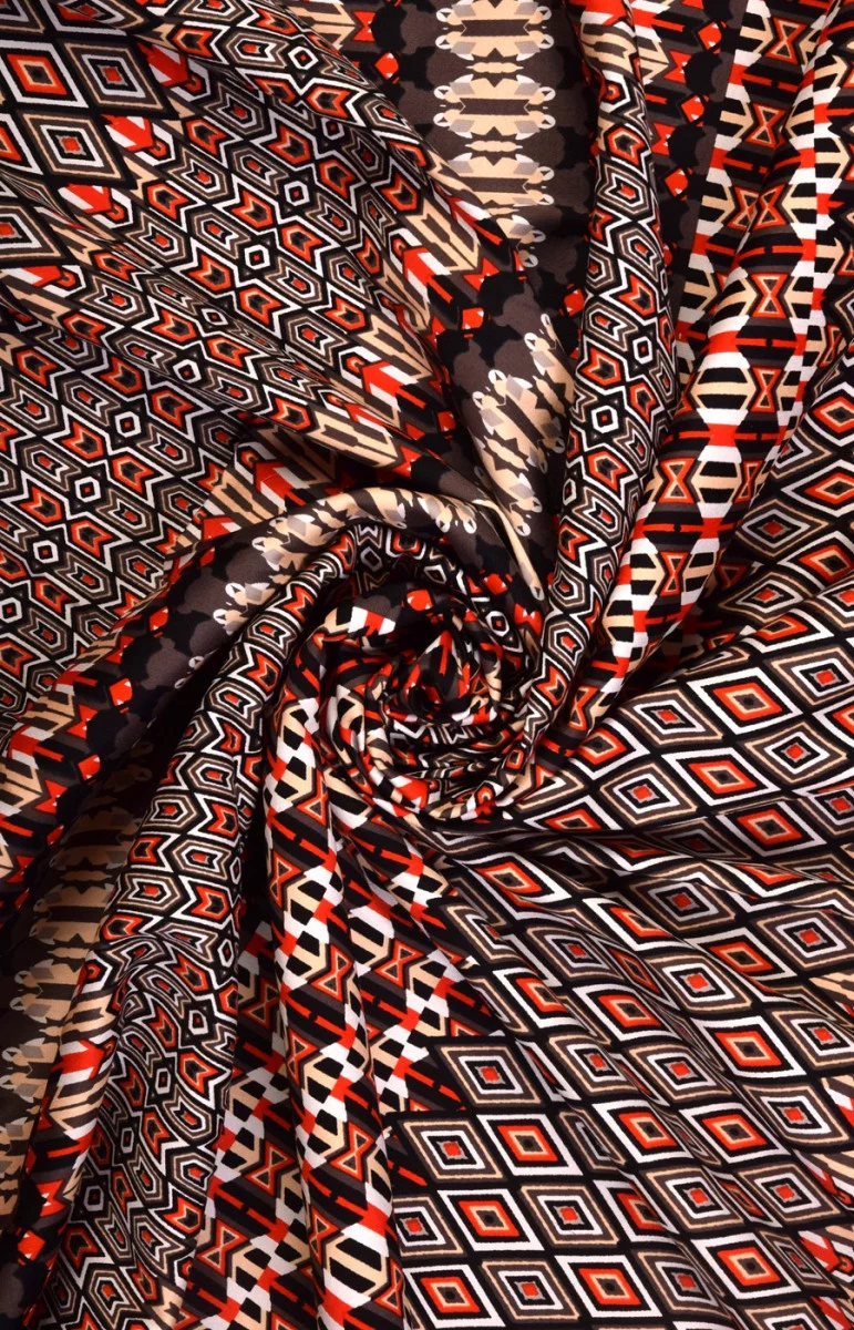 Bavlna s elastanem s africkým vzorem je středně silná neprůhledná tkanina.