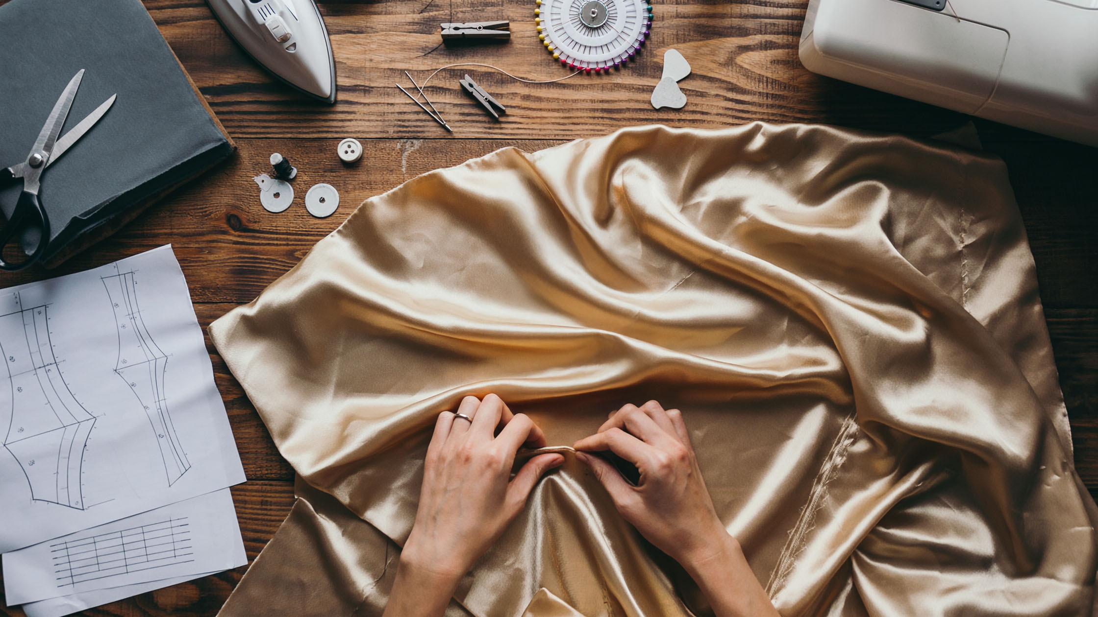 Stříhací a upevňovací doplňky – proč mohou špendlíky poškodit satén?