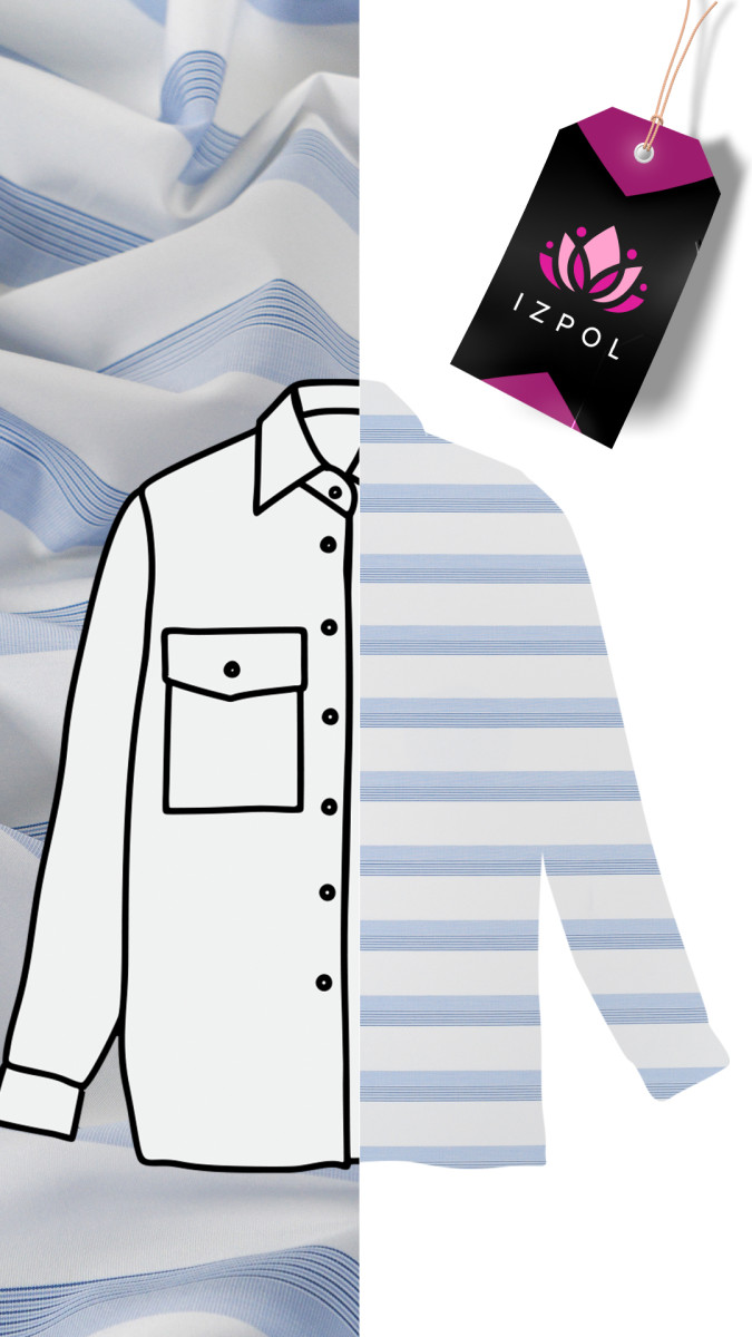 Italská bavlněná košile krémové barvy s motivem modrých pruhů, šíře 2 cm.