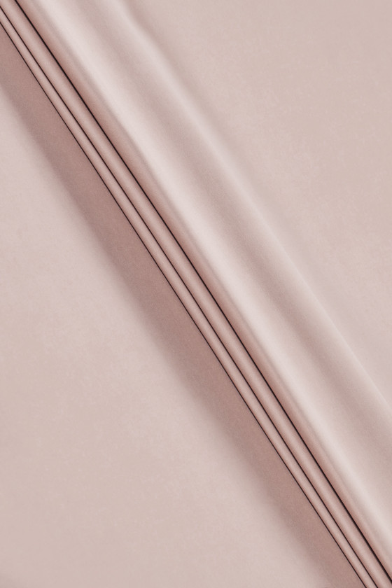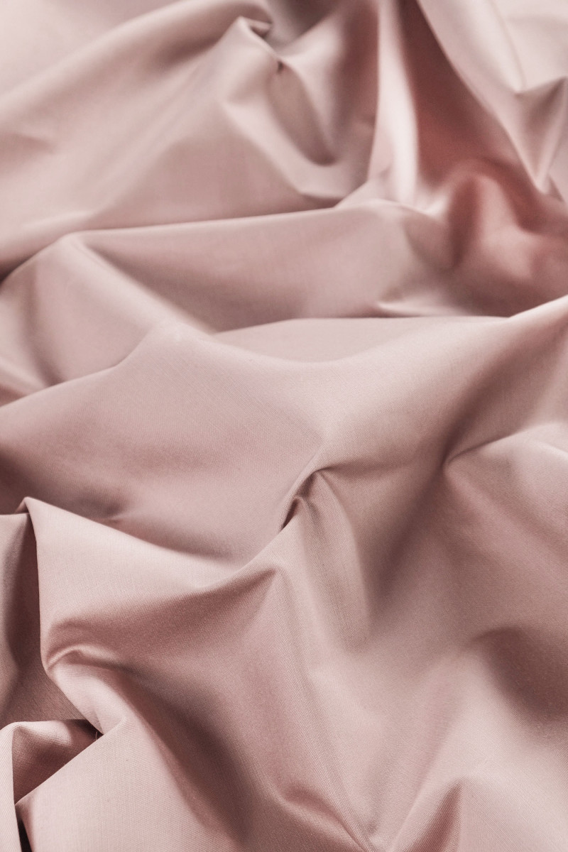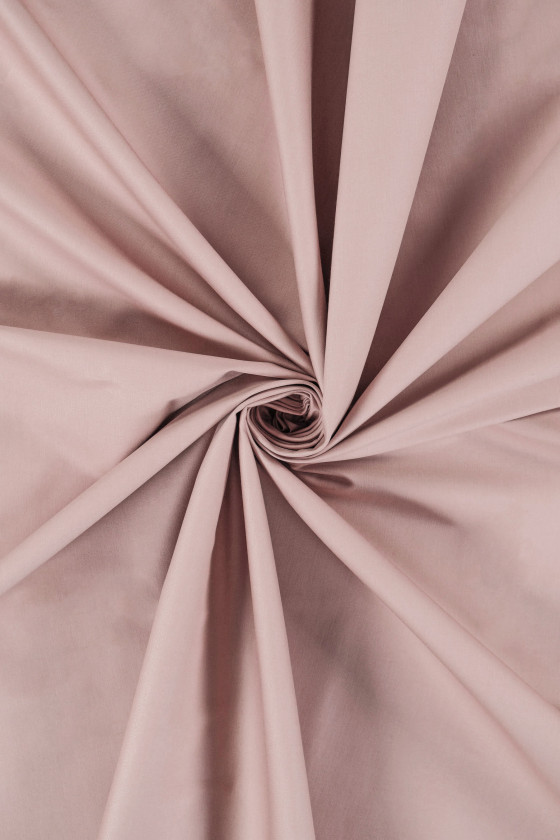Italská bavlněná tkanina s přídavkem viskózy a elastanu ve světlé, špinavě růžové barvě. Látka je mírně tuhá, s jemnou saténovou vazbou na jedné straně. Velmi dobře se natahuje, takže je ideální pro ušití vypasovaných šatů, sukně nebo šortek. Díky přírodnímu složení je skvělou látkou na jaro a léto.