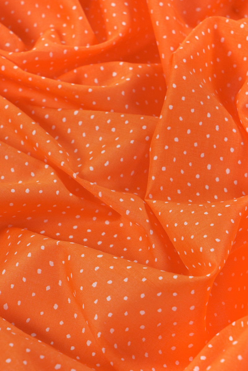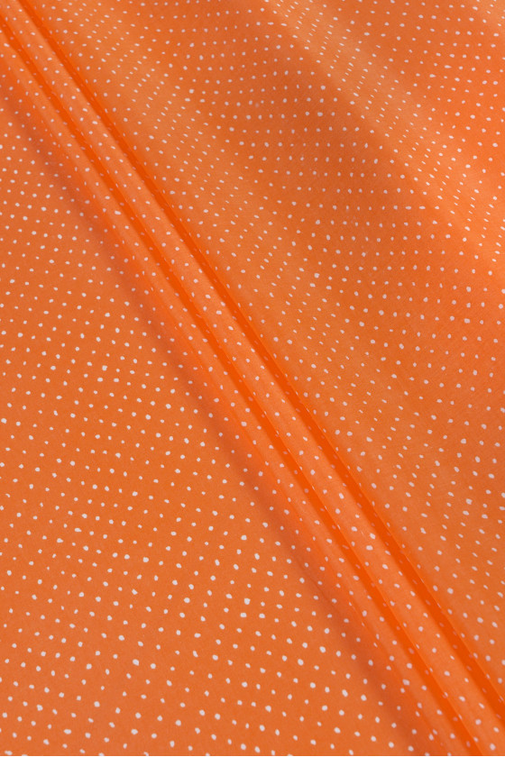 Oranžový hedvábno-bavlněný batist s bílými puntíky je jemná, vzdušná látka ideální do letních veder.