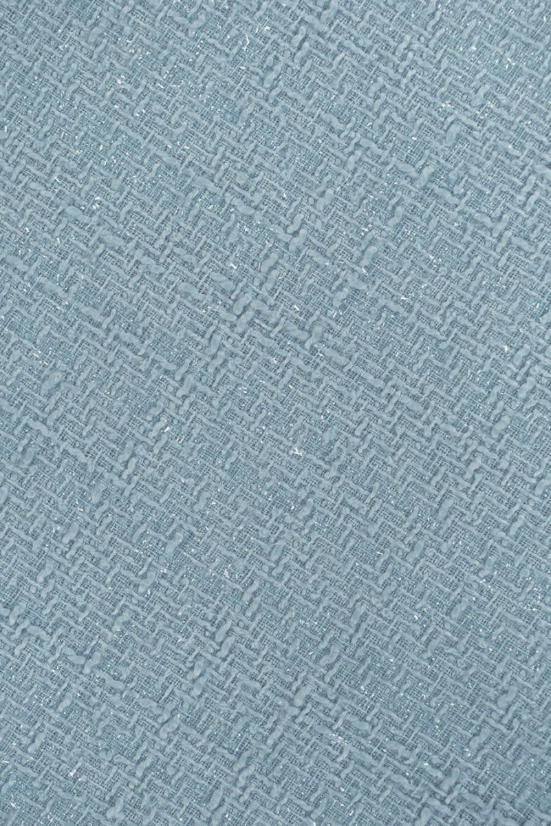 Italská kostýmní látka chanel v džínové modré barvě s vetkanou lurexovou nití. Ideální pro soupravy, jako jsou: sako + sukně nebo šaty. Lze jej také použít k šití tenkého přechodného kabátu.
