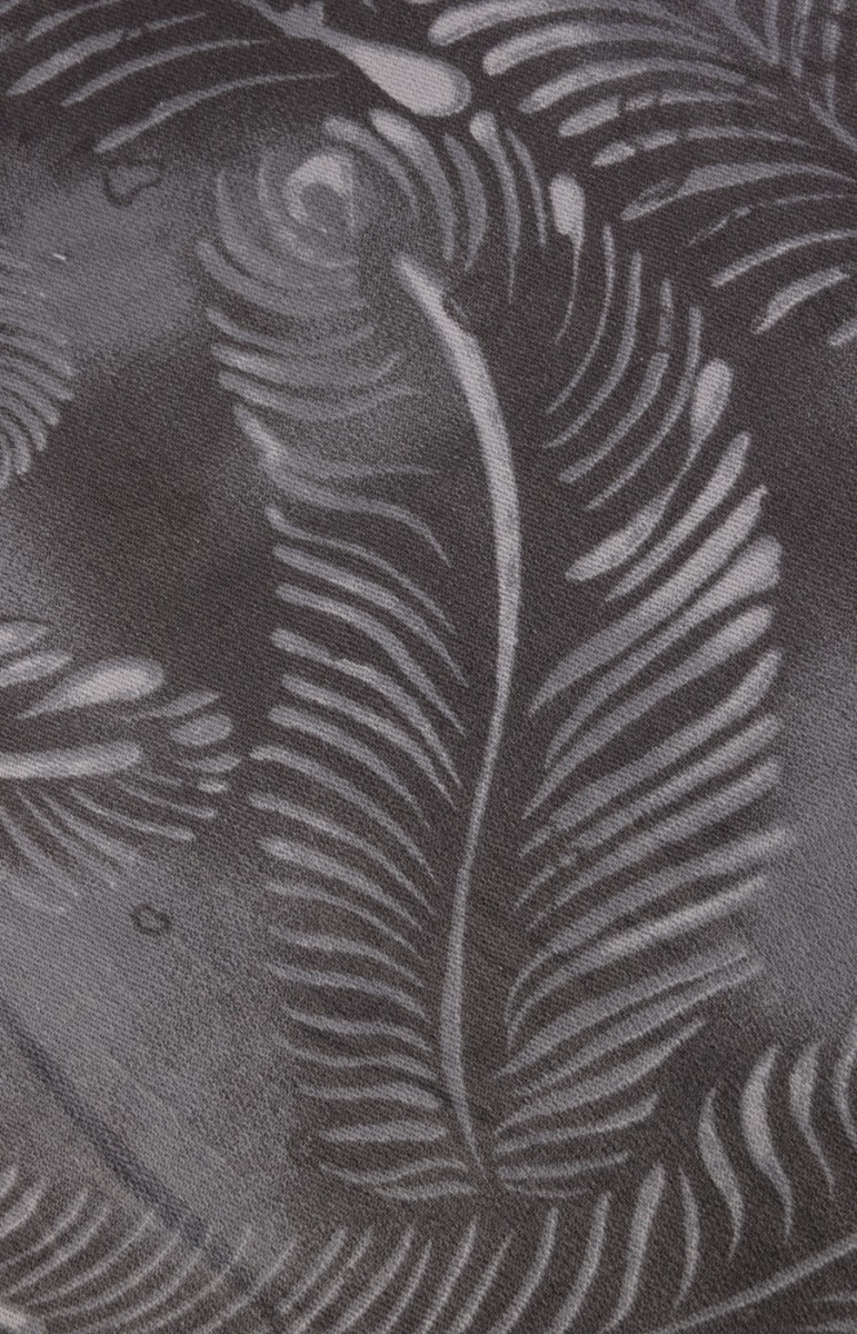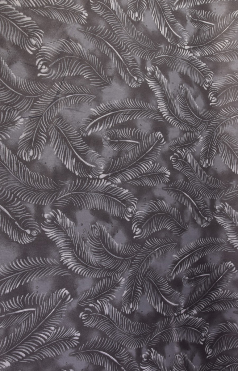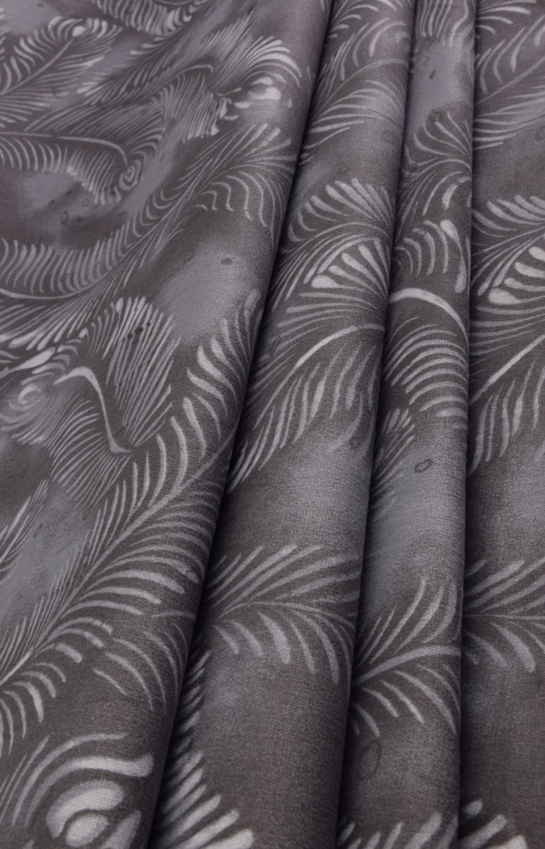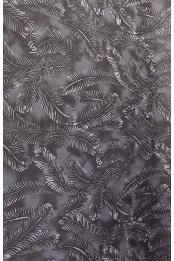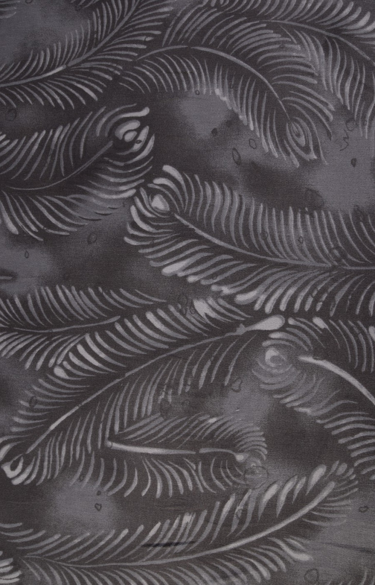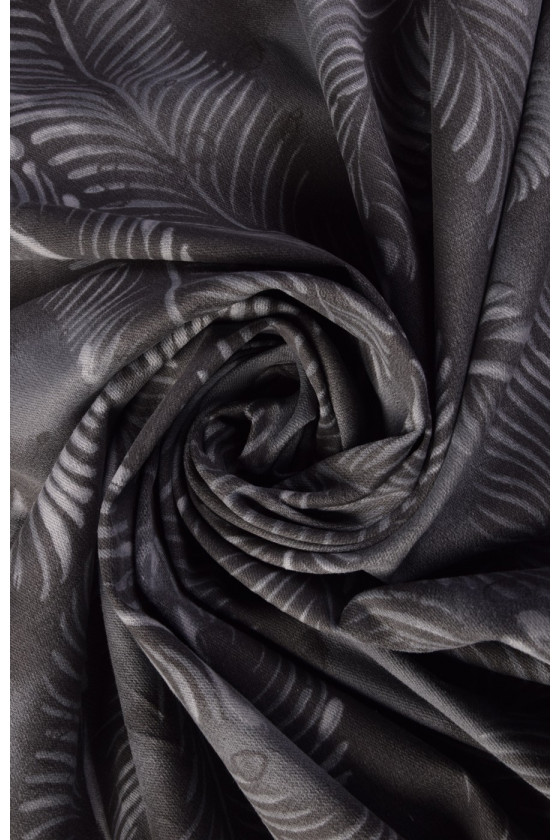 Elastická džínovina, tkaná z viskózových nití -94% a elastanu 6%. Barvy - světlé listy na tmavě šedém pozadí. Díky své pružnosti je látka vhodná pro šití přiléhavých oděvů.