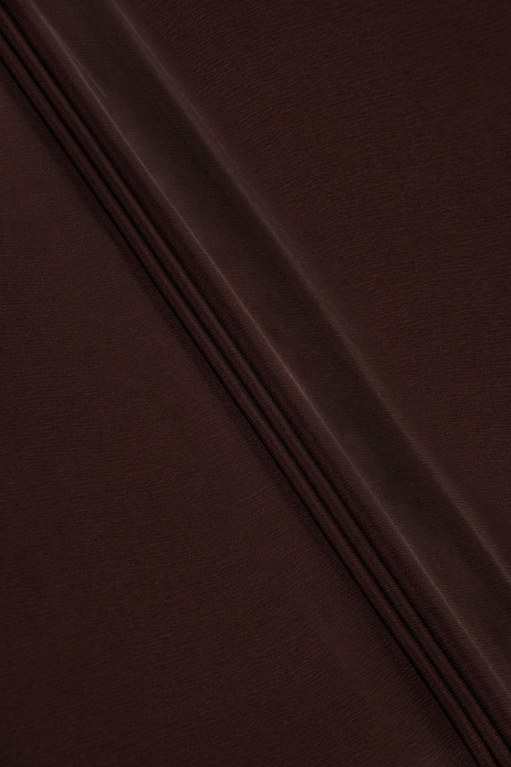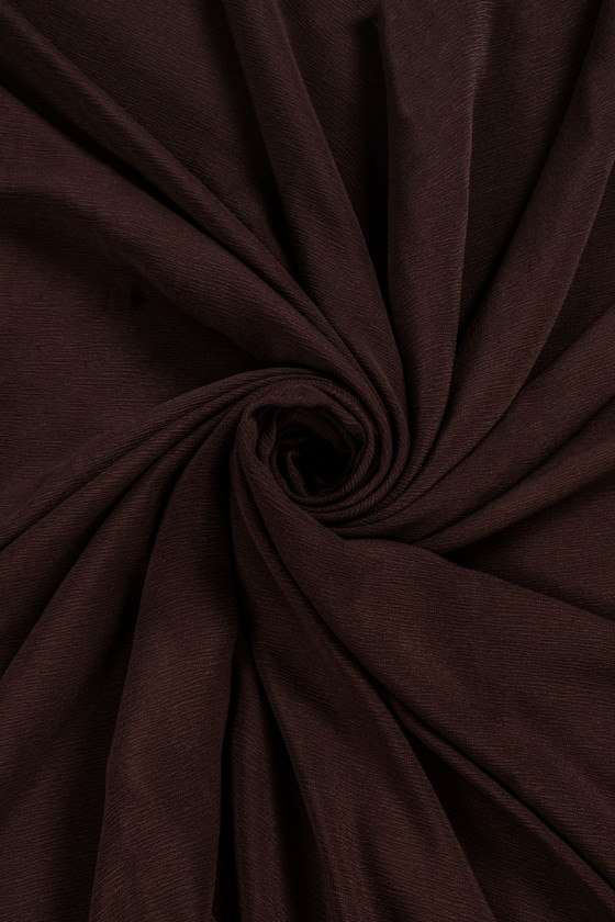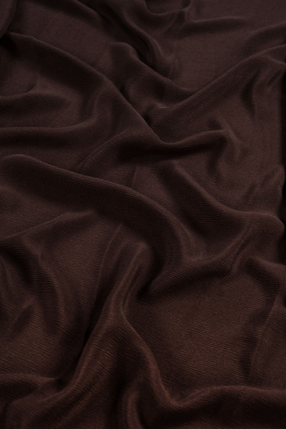 Italský 100% hedvábný krep v hnědé barvě s velmi zajímavou, zvrásněnou strukturou. Hedvábný krep je jemná, tenká, polomatná látka. Lze s ním vykouzlit vzdušné šaty, jemné halenky, sukně, šátky, šátky.
