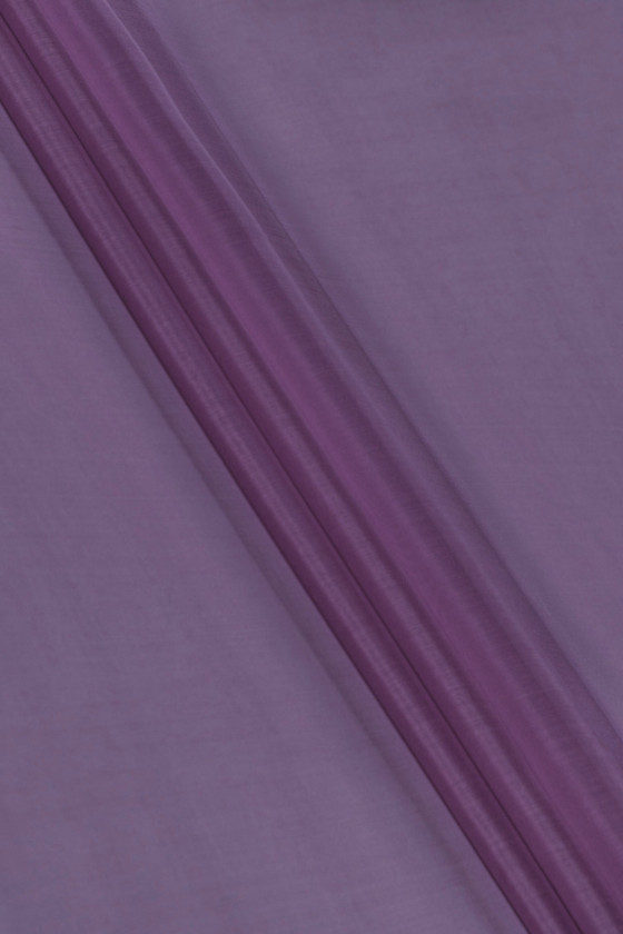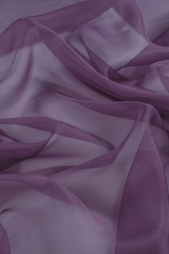 Italská 100% hedvábná organza v tlumené fialové. Organza z přírodního hedvábí je tenká, průhledná, ale tuhá tkanina s jemným leskem charakteristickým pro hedvábné tkaniny. Ideální pro šití šatů, halenky, košile, sukně.