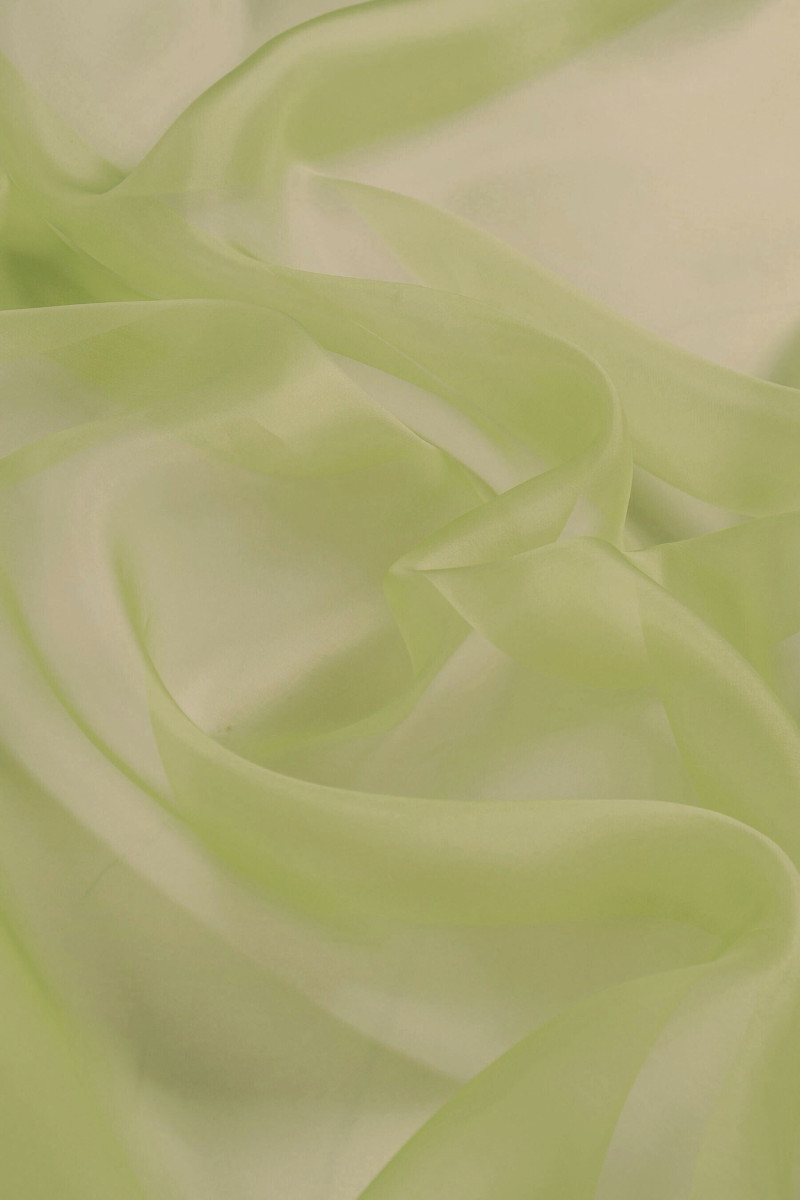 Italská tkanina ze 100% hedvábné organzy v kiwi zelené barvě. Organza z přírodního hedvábí je tenká, průhledná, ale tuhá tkanina s jemným leskem charakteristickým pro hedvábné tkaniny. Ideální pro šití šatů, halenky, košile, sukně.