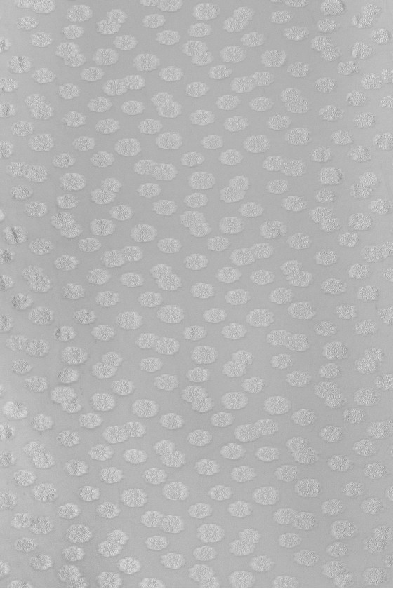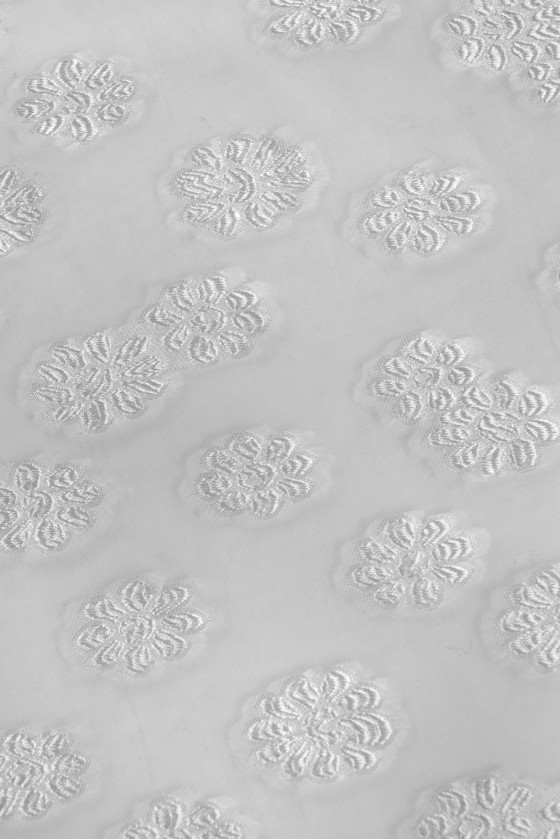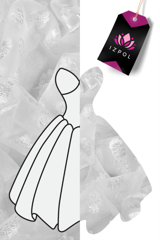 Italská hedvábno-polyesterová organza s našitými květy krémové barvy.