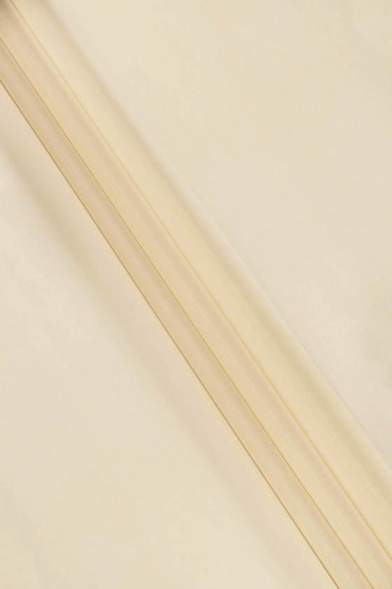 Tuhá organza z přírodního hedvábí ve vanilkové barvě, středně průhledná. Lze jej použít k šití elegantních šatů, sukní, na šály a jako dekorační látku.