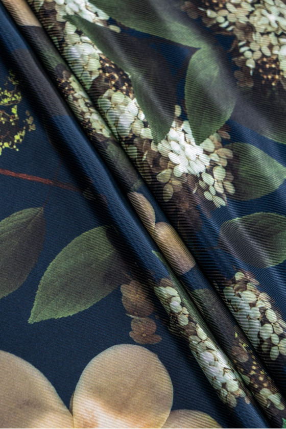 Krásné vzorované hedvábí s keprovou vazbou s květinovým motivem. Látka je dodávána v kupónu o rozměrech 125 cm* 140 cm.