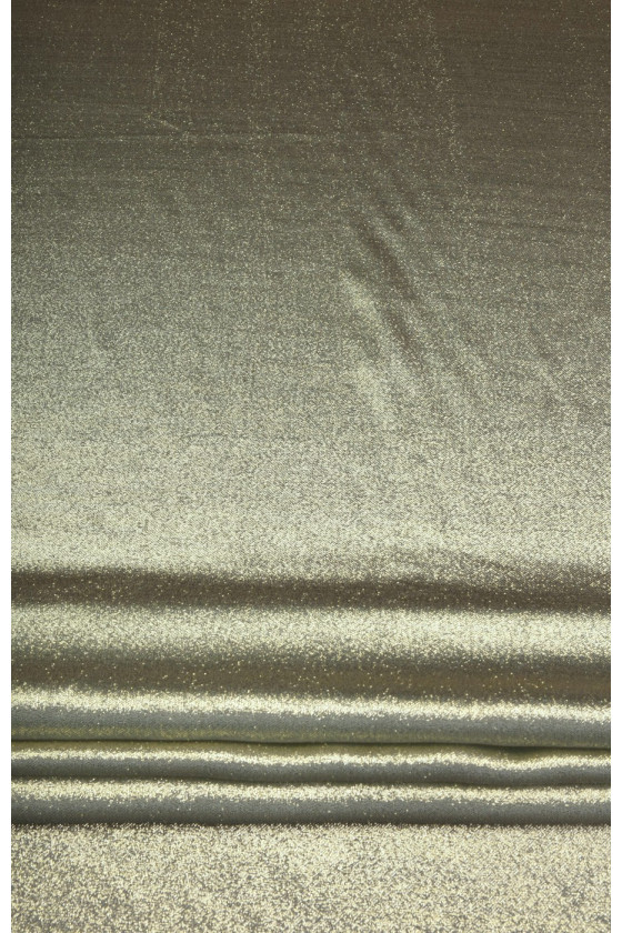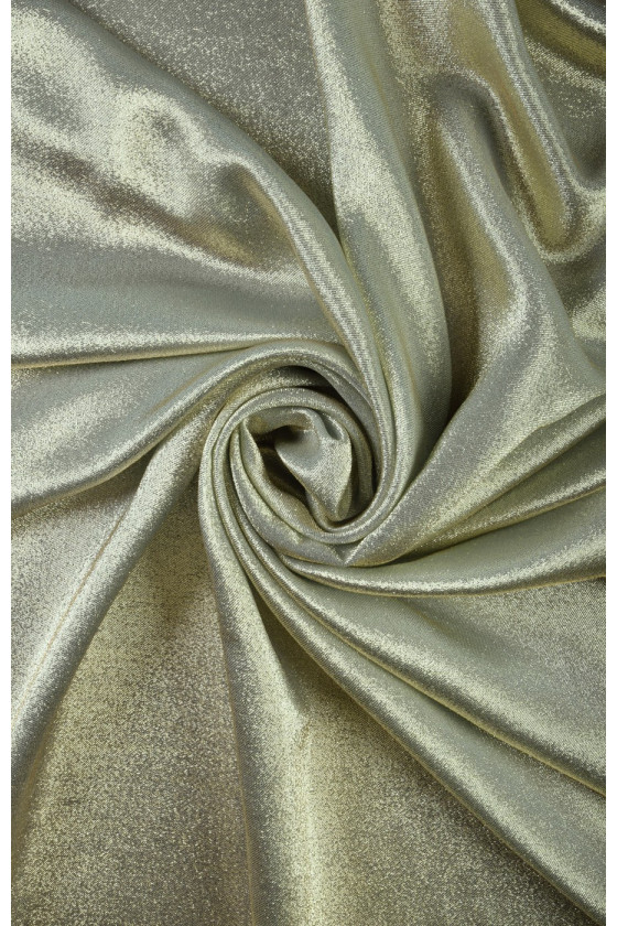 Krásná, vzdušná látka z přírodního hedvábí a lurexu. Tkanina je mírně elastická. Proti dopadajícímu světlu se hodně třpytí. Ideální pro letní večerní outfity. Barvy: světle mátová se zlatou nití.