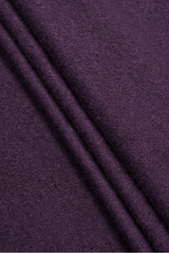 Italská svetrová pletenina velmi dobré kvality, utkaná z vlny, akrylu a mohéru. Elastický, tenký, lehký materiál s jemným vlasem. Ideální na ušití svetru nebo halenky. Barva: tmavě fialová