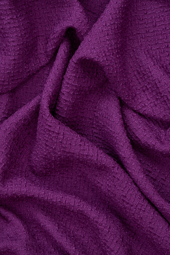 Italská chanelová vlna s jemnou boucle vazbou ve fuchsiově fialové barvě. Tkanina nejvyšší kvality, pocházející z jedné z nejrenomovanějších továren v Itálii. K dispozici jsou i jiné barvy!