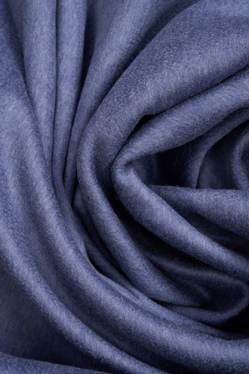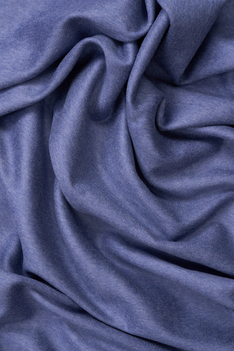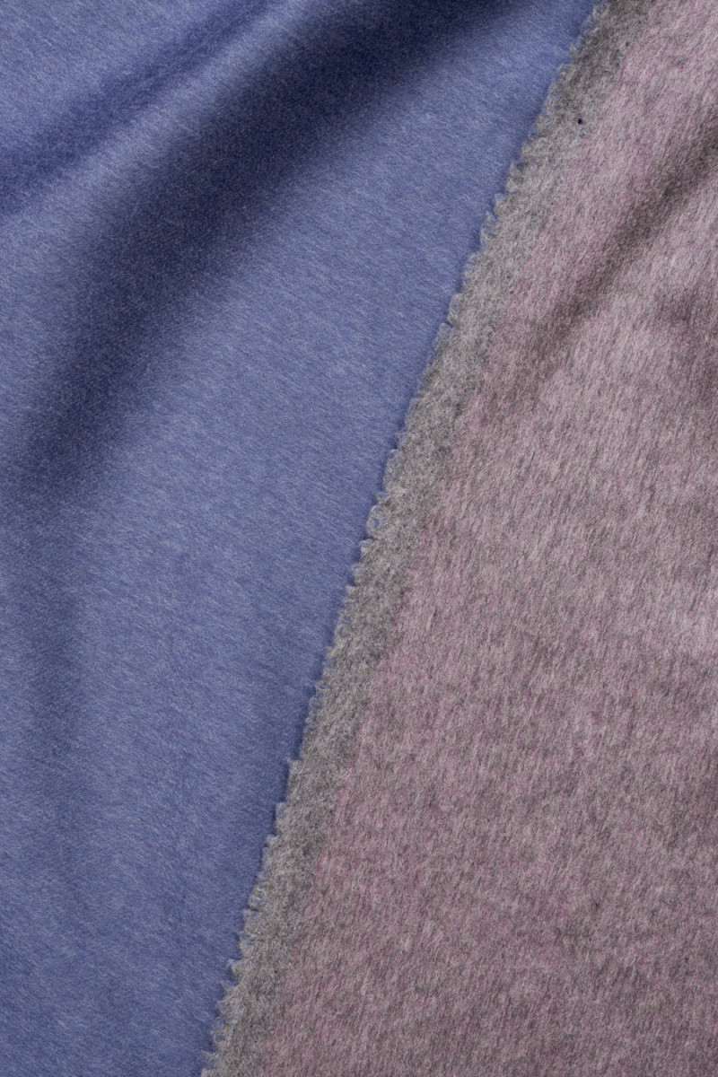Italská kabátová tkanina utkaná z přírodní vlny s přídavkem kašmíru. Látka je oboustranná, jedna strana je vyrobena ve fialové barvě, druhá v šedé barvě. Vlněné látky jsou ideální pro svrchní oděvy (kabát, bunda, vesta), protože hřejí a zároveň umožňují pokožce dýchat.