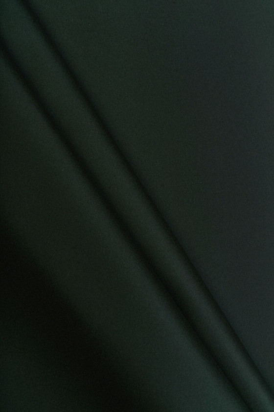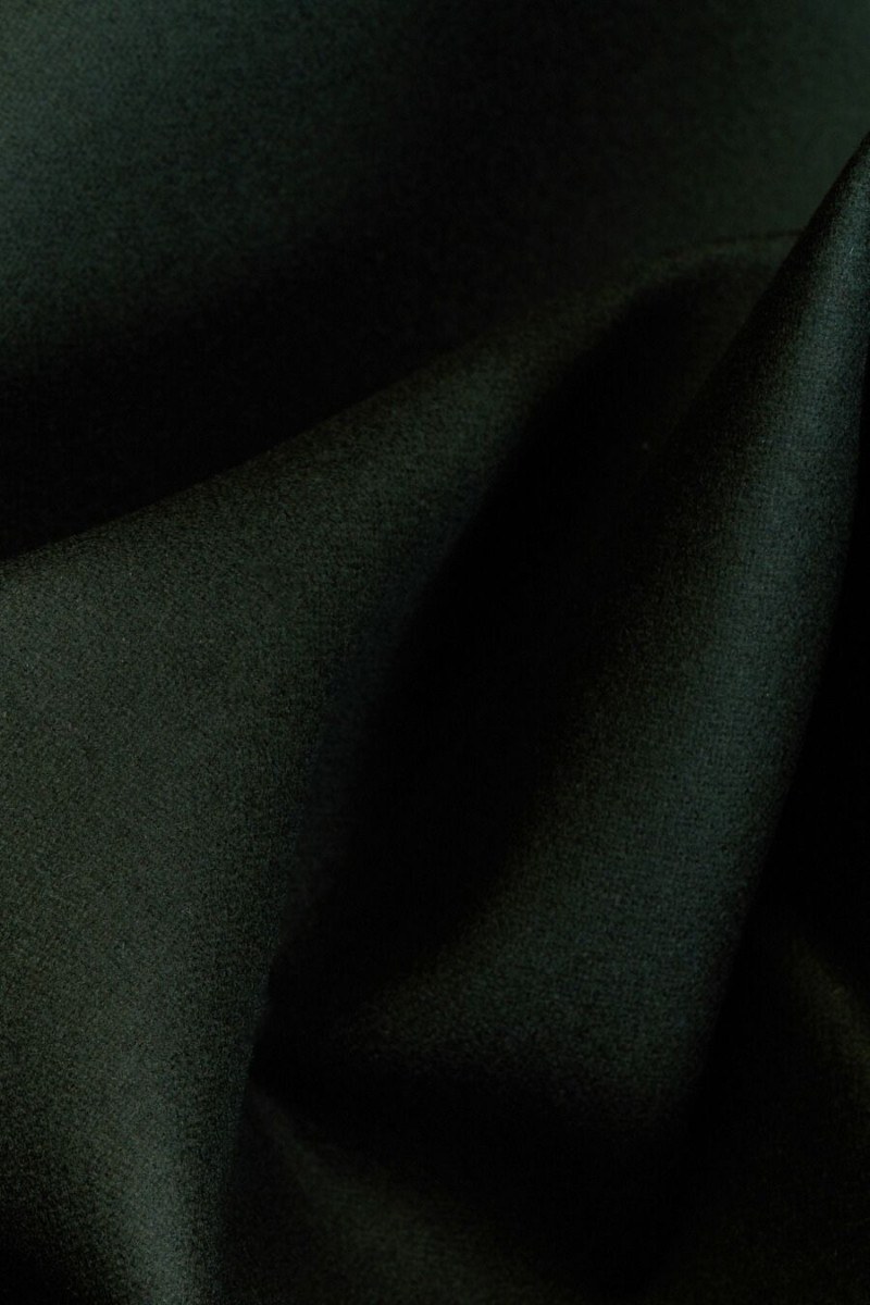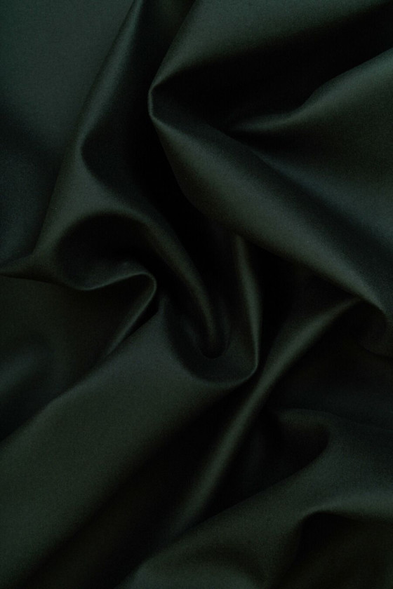 Italská kabátová látka tkaná z vlny a polyamidu ve velmi tmavě zelené barvě. Látka má hladkou a hustou vazbu, levá strana je zakončena černou pěnou, díky které je látka tuhá a lehce působí na nitě. Díky použité pěně získává materiál další odolnost a pevnost a nevyžaduje podšívku. Doporučujeme pro kabáty, bundy a teplejší bundy.