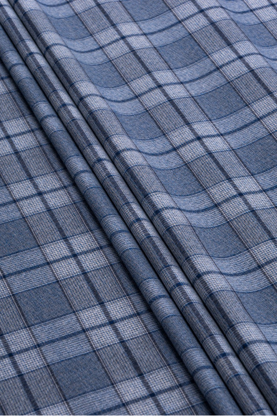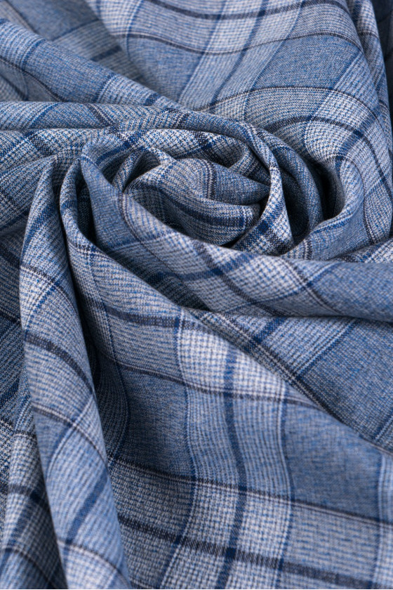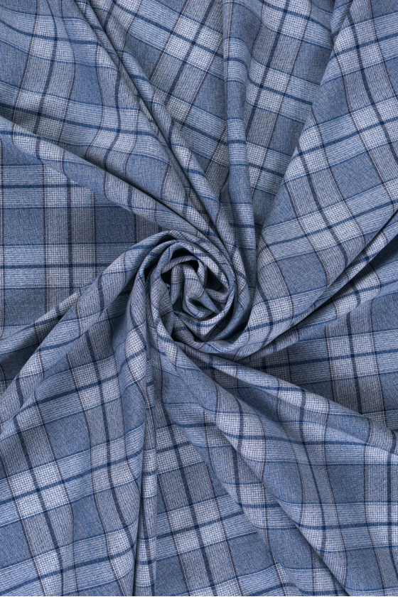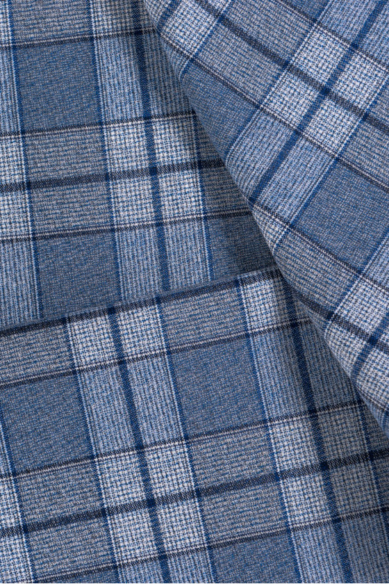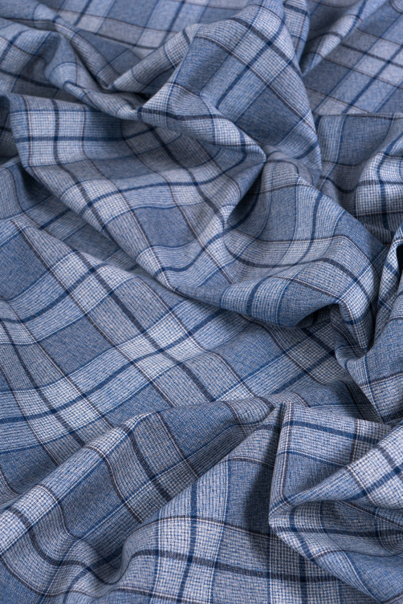 Modrá kostkovaná kostýmová vlna
