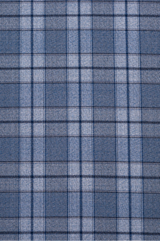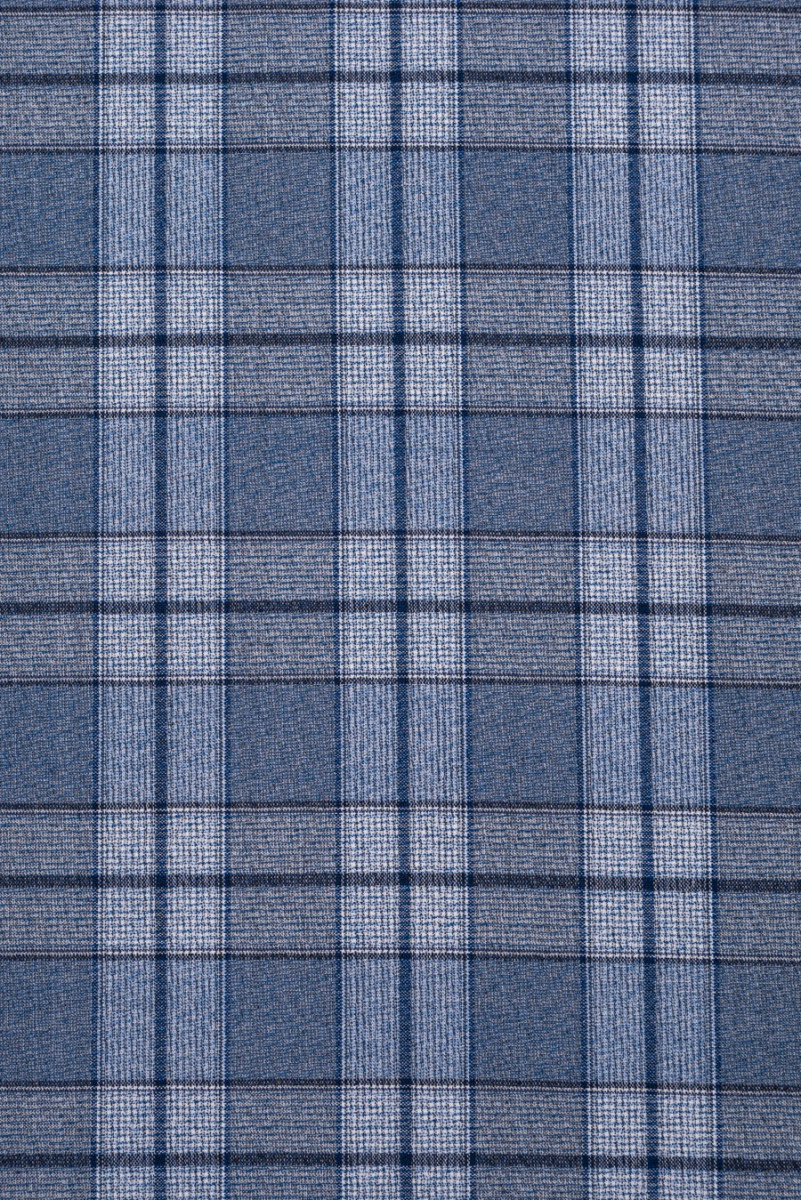 Italská kostkovaná bižuterie v odstínech modré a ecru, tkaná ze 100% střižní vlny.