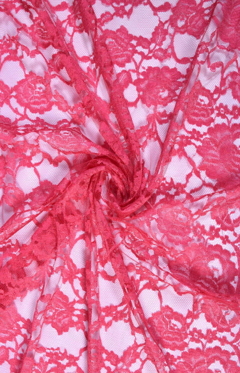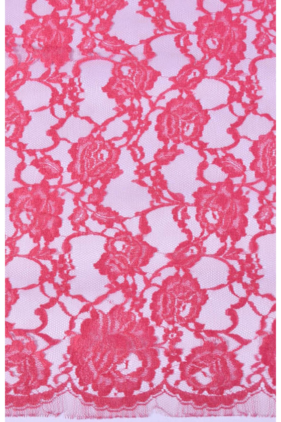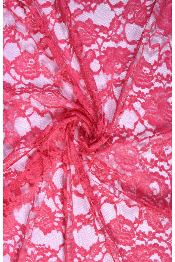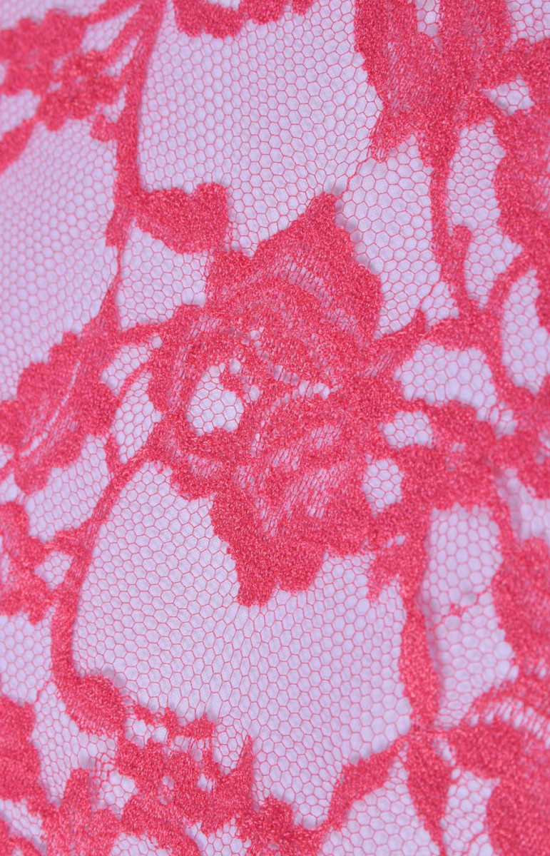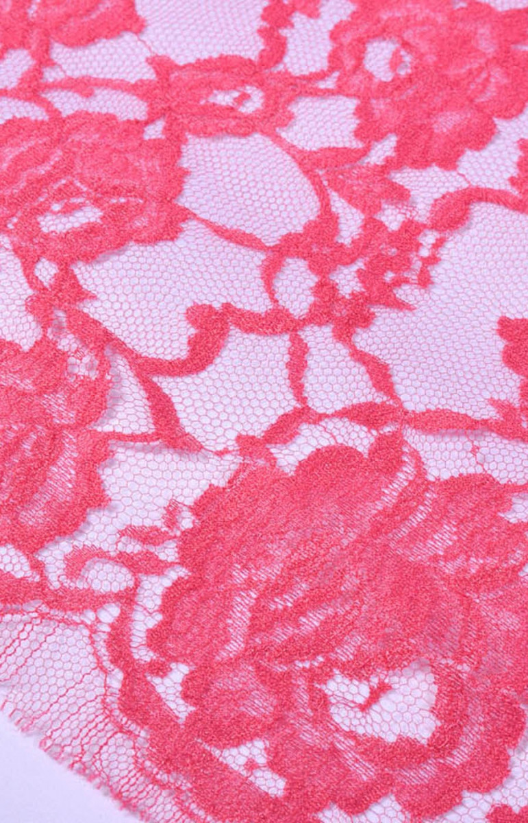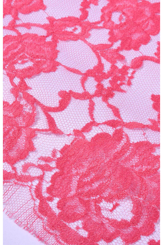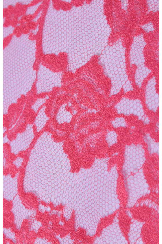 Stabilní francouzská krajka v růžové barvě. Pod ním jsme zvolili hedvábný satén a mušelín, které jsou navzájem barevně sladěné. Ideální k šatům nebo halenkám.