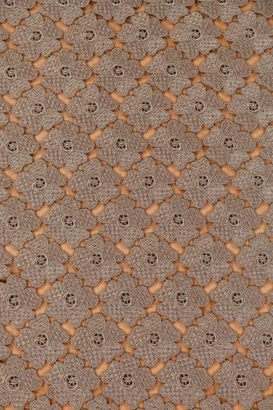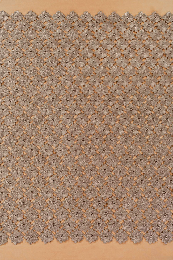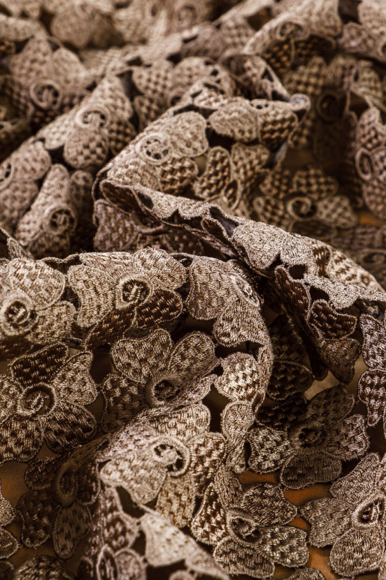 Silnější guipure krajka široká asi 90cm. Látka je těžká, neelastická, zakončená květinou na obou stranách. Ideální k šatům, sukním nebo halenkám.