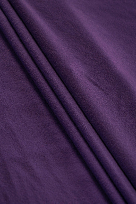 Italská kabátová látka ve fialové barvě, utkaná z přírodní vlny s příměsí polyamidu. Vlněné látky jsou ideální pro svrchní oděvy (kabát, bunda, vesta), protože hřejí a zároveň umožňují pokožce dýchat.