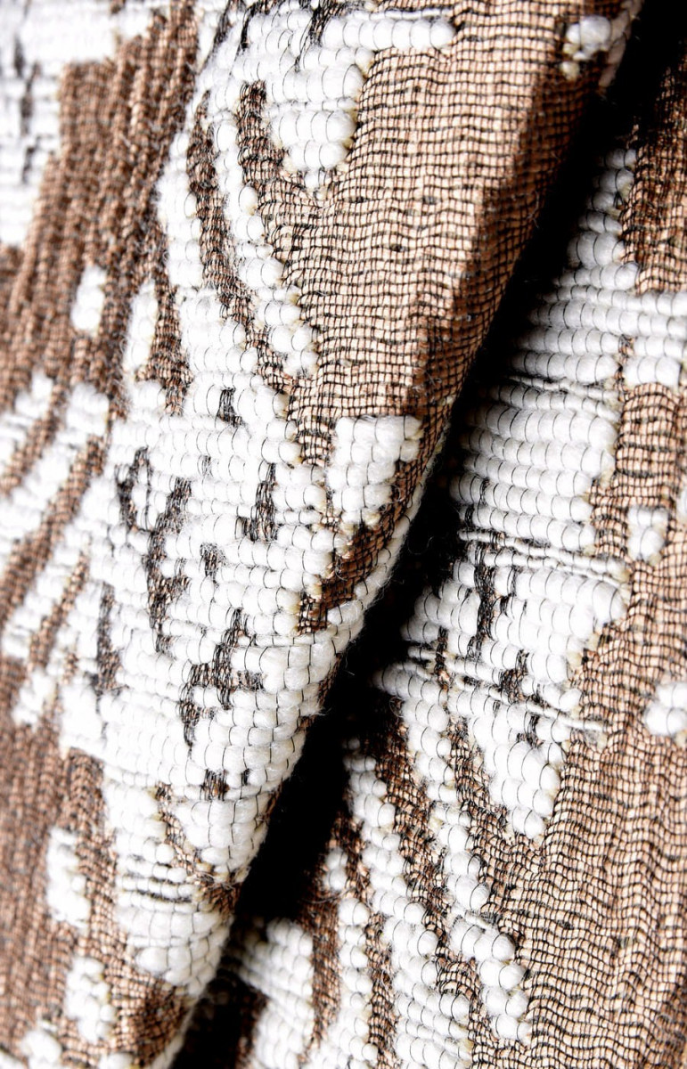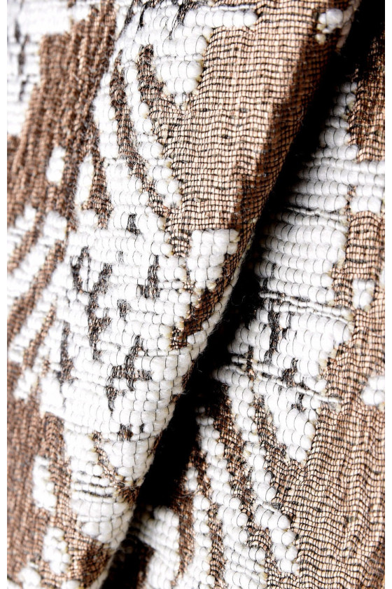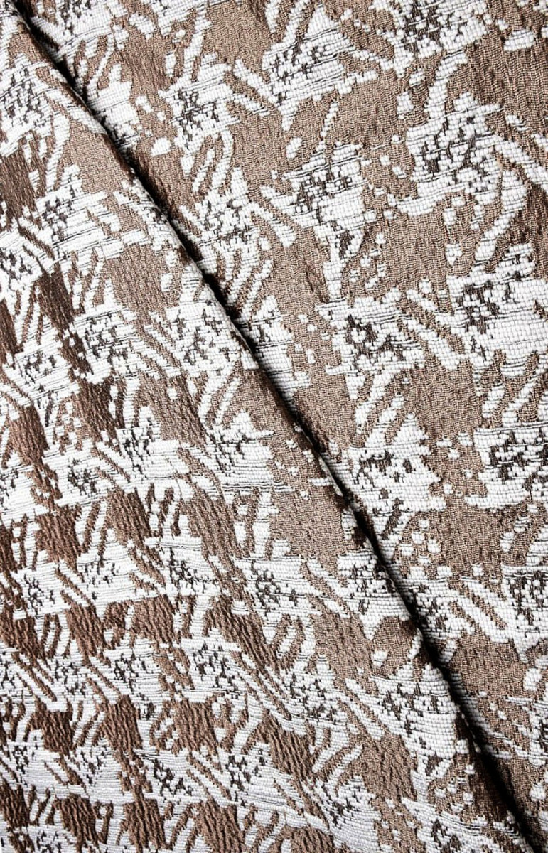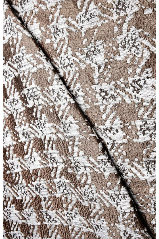 Silná žakárová tkanina s vějířkovitou nohou na kabáty nebo bundy. Doporučuje se chemické čištění.