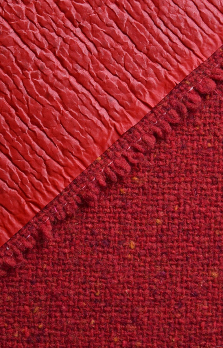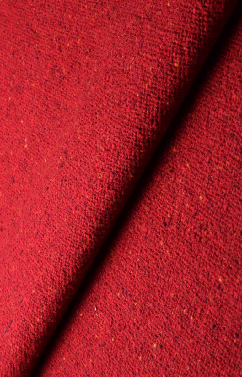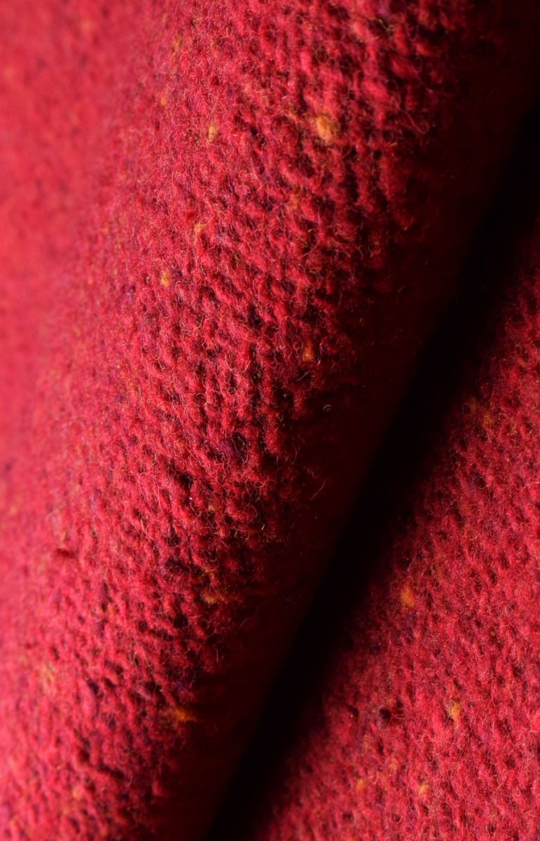 Italská kabátová látka tkaná ze 100% přírodní vlny v červené barvě - látka je lepená větruodolnou membránou. Vlněné látky jsou ideální pro svrchní oděvy (kabát, bunda, vesta), protože hřejí a zároveň umožňují pokožce dýchat.