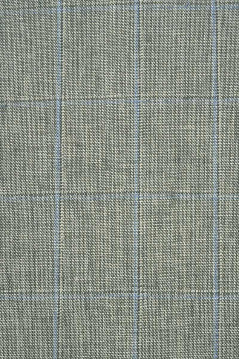 Italská 100% lněná látka s kostkovaným vzorem, šíře 4,5 cm. Celé je to v tlumené zelené barvě s krémovou nití a modrým kostkovaným motivem. Velmi zajímavý návrh na ušití letního obleku, saka, kalhot nebo bundy.