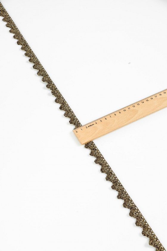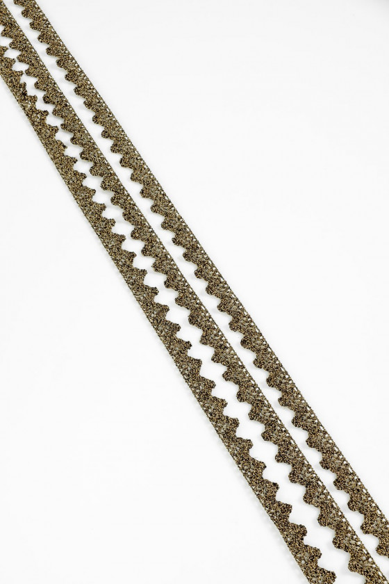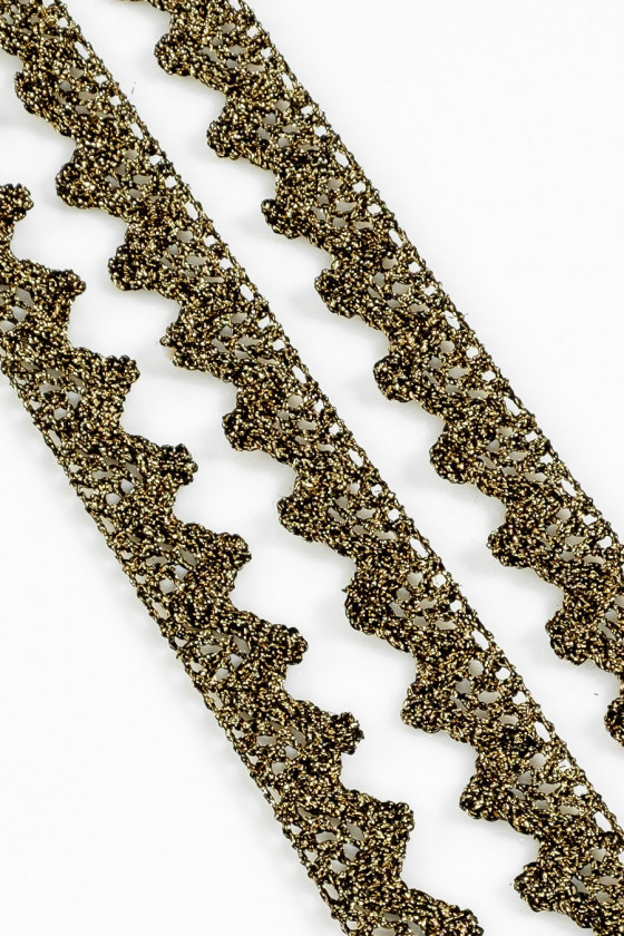 Italská galanterní páska v černé barvě se zlatou lurexovou nití. Zajímavý efekt "háčkování". Šířka: 2 cm.