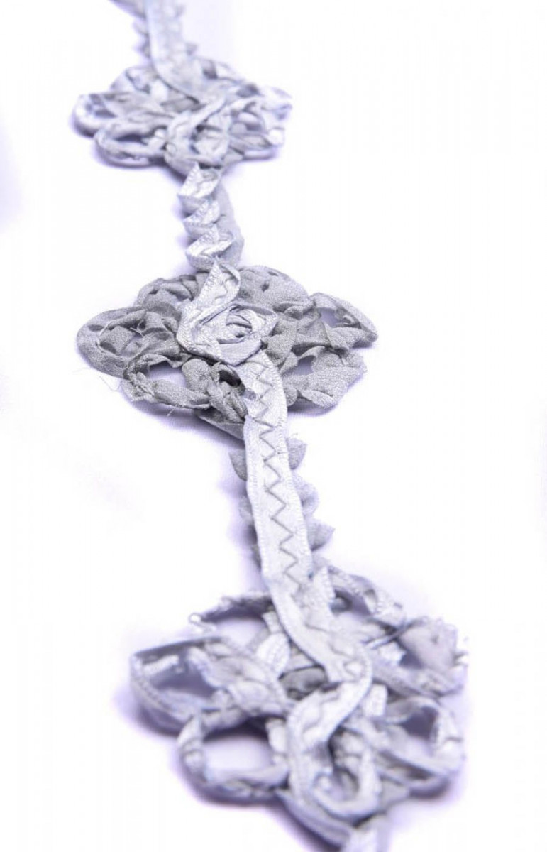 Galanterní páska v šedé a stříbrné barvě ideální pro povrchové úpravy a doplňky.