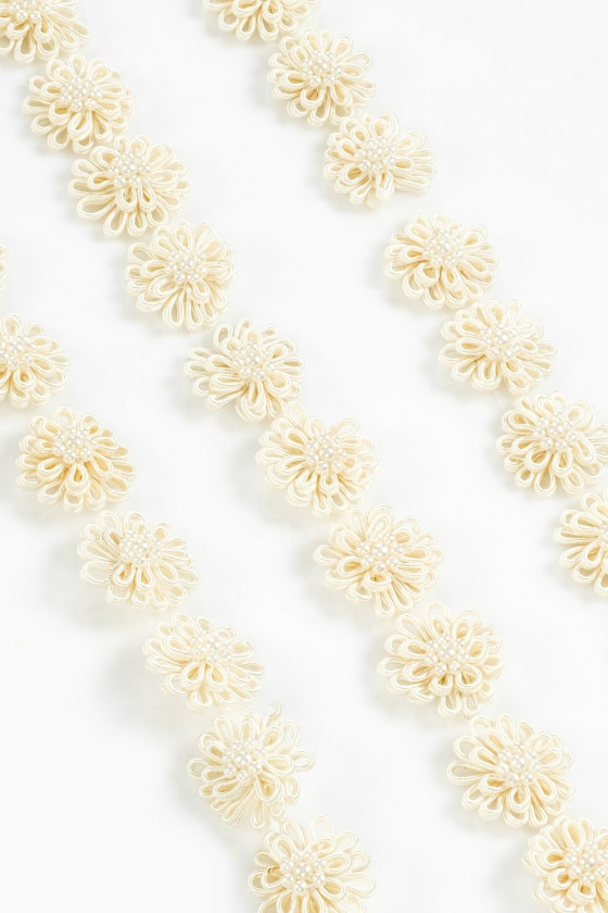 Krásná páska určená k dokončování šatů a halenek. Našité květiny o velikosti asi 2,5 cm.