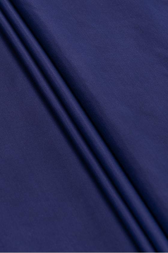 Žerzejový úplet ve školní tmavě modré barvě. Tkanina ve složení 62% viskóza, 30% polyamid, 8% elastan (elastický). Gramáž úpletu je 150g/m2. Doporučujeme pro šití pohodlného oblečení - šatů, sukní, teplákových souprav. Srážlivost látky +-10%.