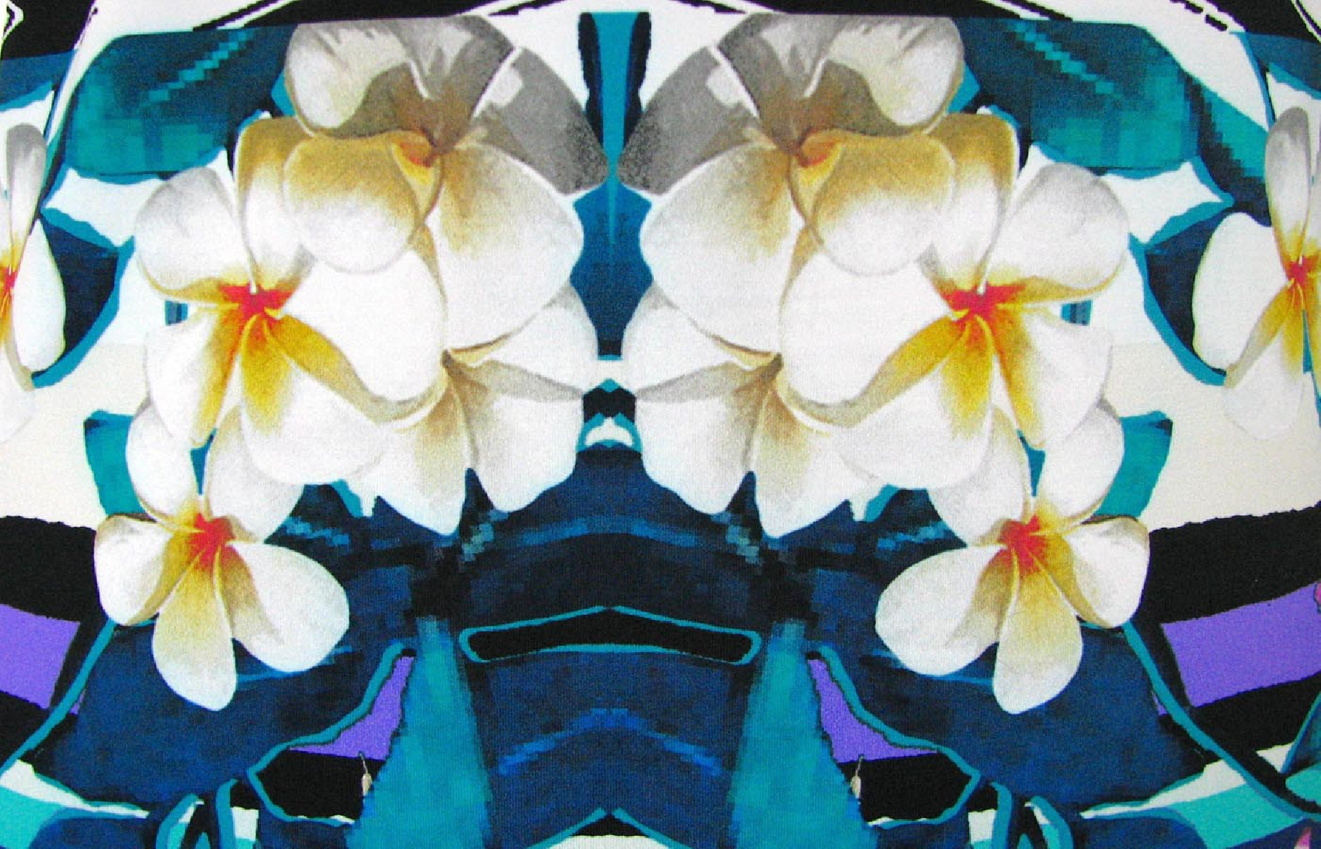 Italská lycrová pletenina ve velikosti kupónu 135cm*140cm. Velmi zajímavý květinový vzor na světle tmavě modrém pozadí.