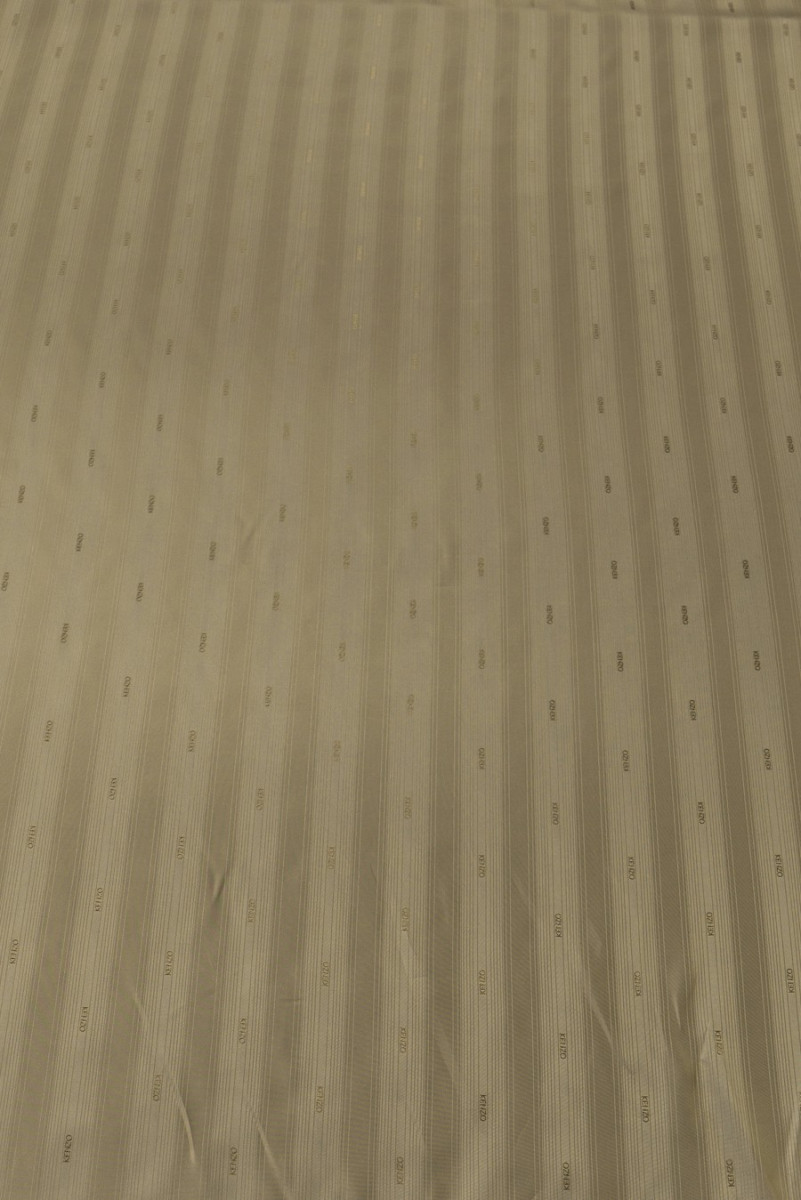 Podšívka z italské viskózy v béžové a olivové barvě. Signováno logem známého módního domu. Tkanina je neelastická, mírně lesklá. Ideální pro podšívku kabátů, bund, vest, bund.