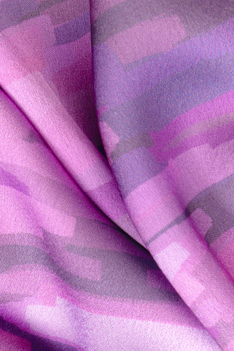 Prémiový italský polyesterový satén s efektním horizontálním vzorem připomínajícím tahy štětcem. Celek je udržován ve velmi módních barvách růžové, hnědé a různých odstínech fialové. Látka je mírně elastická, tenká, ale neprůhledná se saténovým leskem. Ideální nabídka pro lidi, kteří mají rádi originální vzory v nejmódnějších barvách.