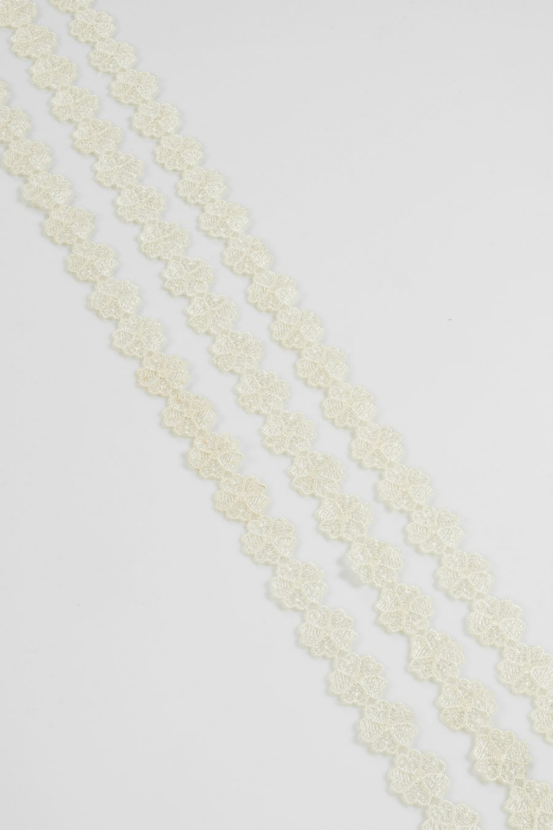 Italská guipure páska v barvě ecru. Motiv spojených květin. Šířka: 2,5 cm.