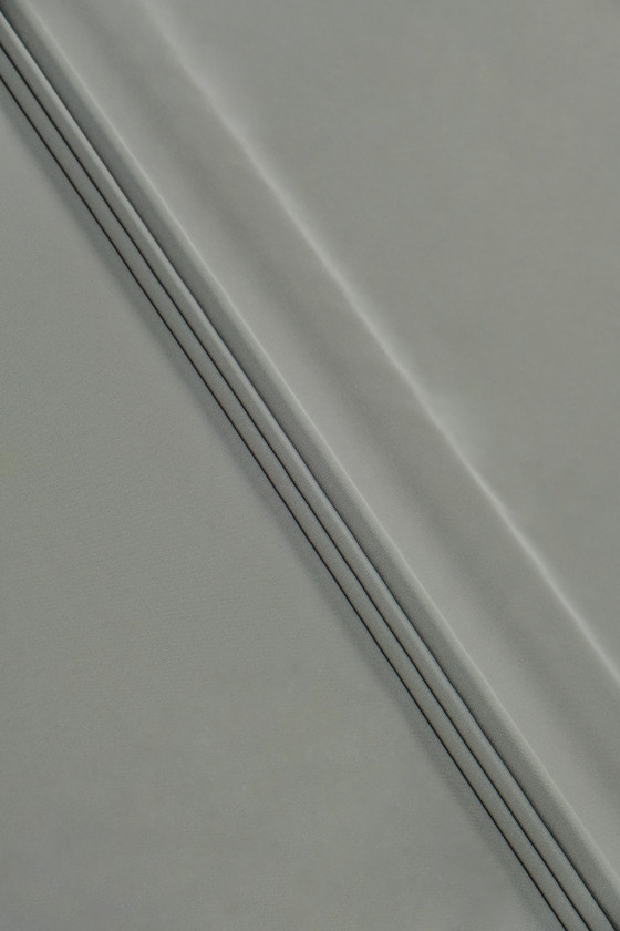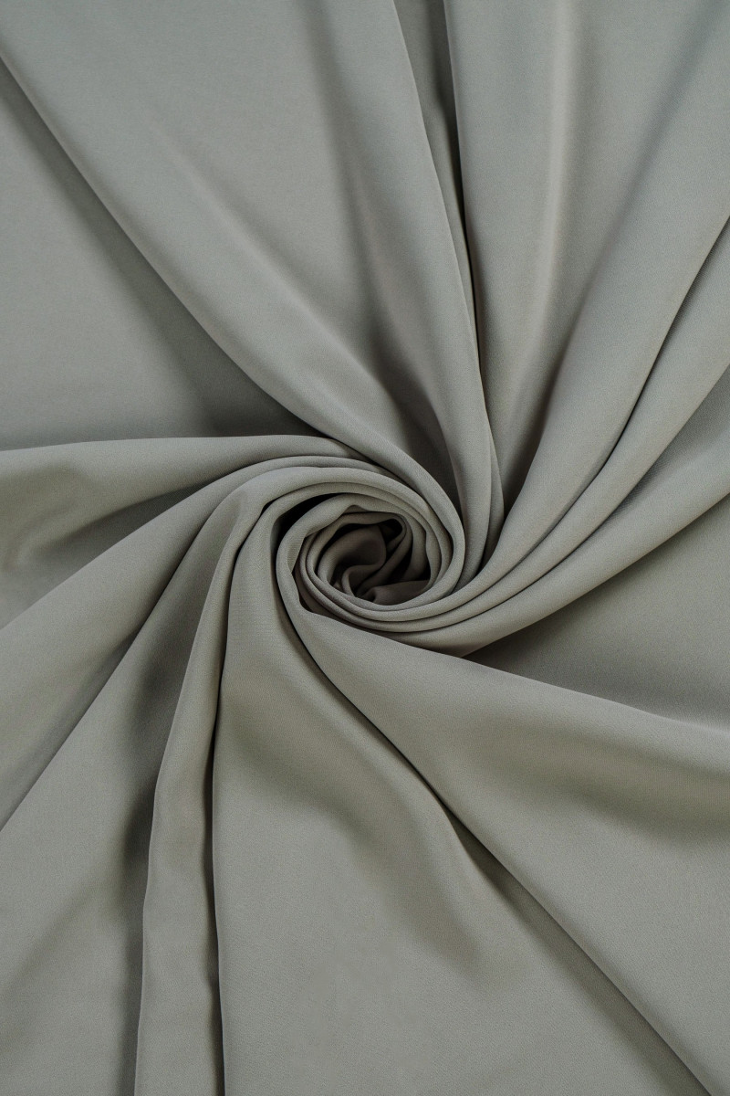 Italská viskózová tkanina cadi ve světle šedé barvě. Látka šatů Cadi je neprůhledná, masitá, splývavá (těžká), matná, mírně elastická. Můžete jej použít k šití šatů, halenek, sukní, kalhot.
