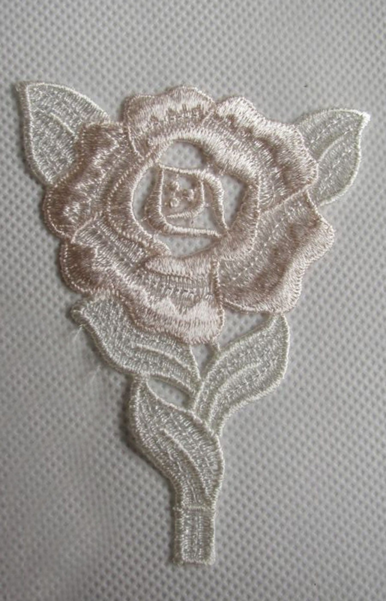 Galanterní květinová aplikace ve světle růžové barvě.