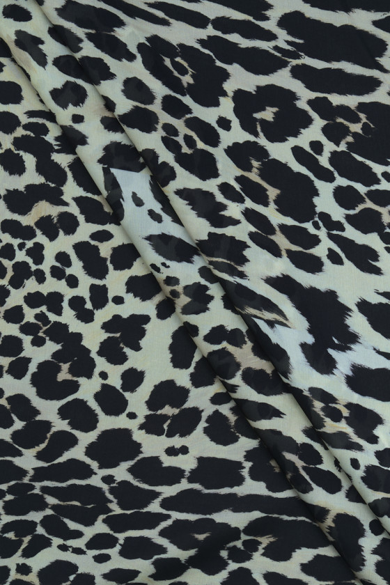 Italský mušelín 100% hedvábí ve velikosti kupónu 130 cm* 120 cm. Klasický leopardí potisk v béžové, hnědé a černé barvě. Látka pro fanoušky značkového oblečení, protože je podepsána jménem známého módního návrháře.