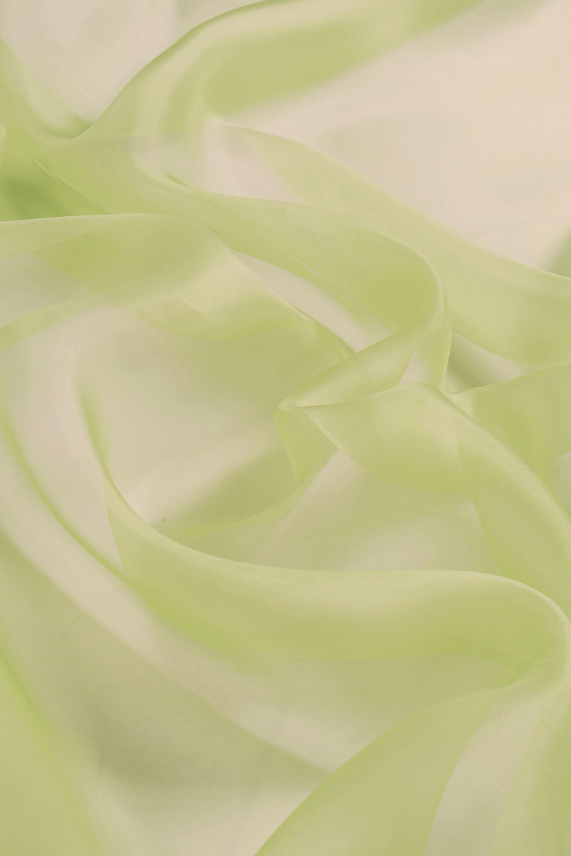 Italská 100% hedvábná organzová tkanina v limetkově zelené Organza vyrobená z přírodního hedvábí je tenká, průhledná, ale tuhá tkanina s jemným leskem charakteristickým pro hedvábné tkaniny. Ideální pro šití šatů, halenky, košile, sukně.