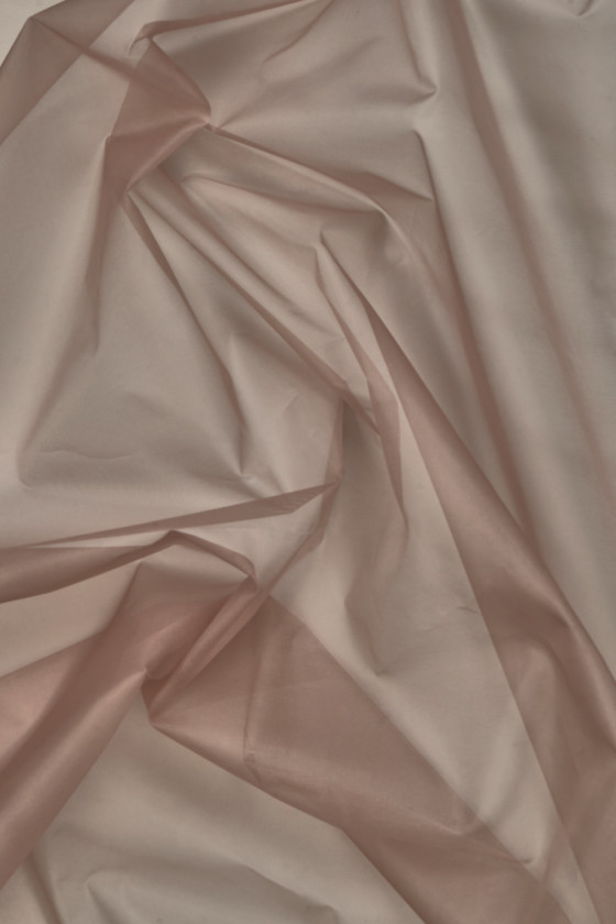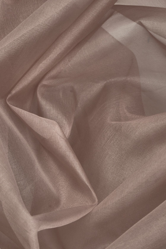 Italská 100% hedvábná organza látka ve špinavě růžové barvě. Organza z přírodního hedvábí je tenká, průhledná, ale tuhá tkanina s jemným leskem charakteristickým pro hedvábné tkaniny. Ideální pro šití šatů, halenky, košile, sukně.