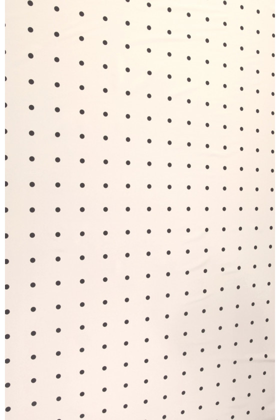 Hedvábný krep Polka Dot je jemná, tenká, ale poloprůhledná látka s mírným leskem. Lze s ním vykouzlit vzdušné šaty, jemné halenky, šátky, šátky. Doporučujeme zvolit podšívku. Barvy: černé puntíky na ecru.