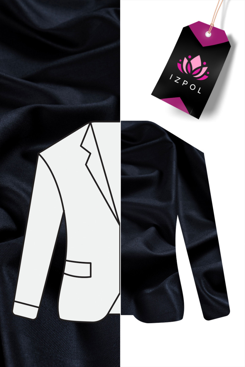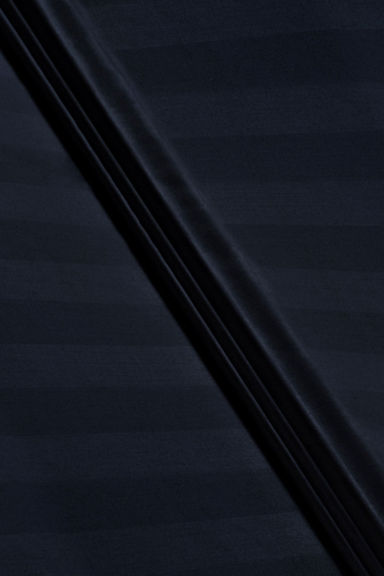 Italská kostýmová vlna ve velmi tmavé tmavě modré barvě. Krásný motiv rybí kosti tvořící svislé pruhy široké 3,5 cm. Neelastická, masitá tkanina s jemným, ušlechtilým leskem. Ideální pro šití obleku, šatů, sukně, kalhot, kostýmu, bundy.