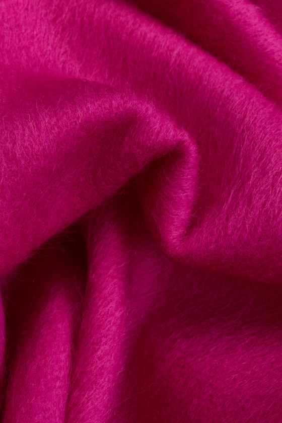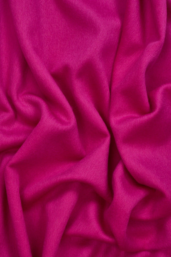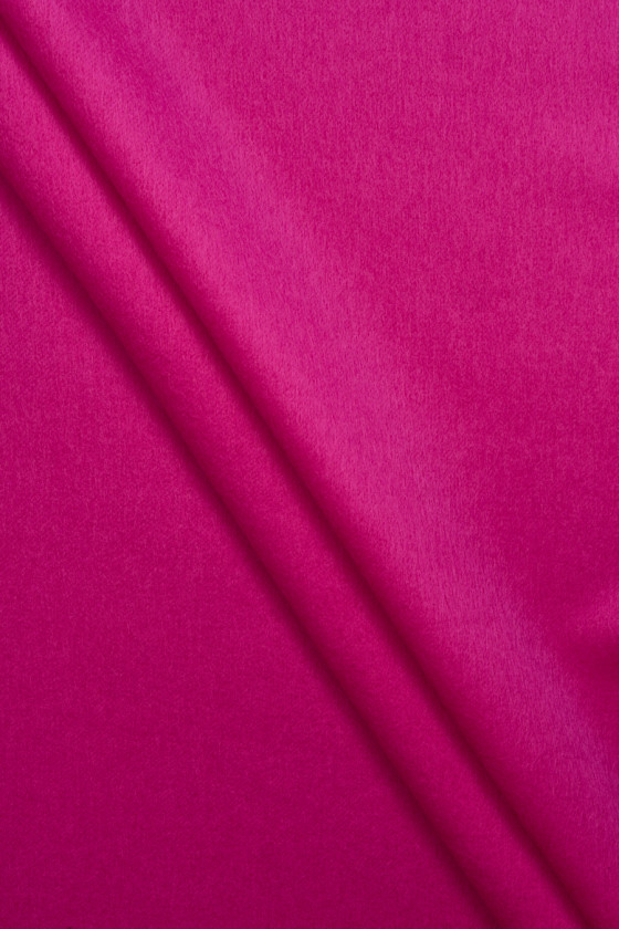 Italská kabátová látka ve výrazné růžové barvě. Měkká tkanina s lehkým vlasem, utkaná z přírodní vlny a mohéru. Je ideální pro svrchní oděvy, jako je kabát, bunda, vesta. Doporučuje se chemické čištění.