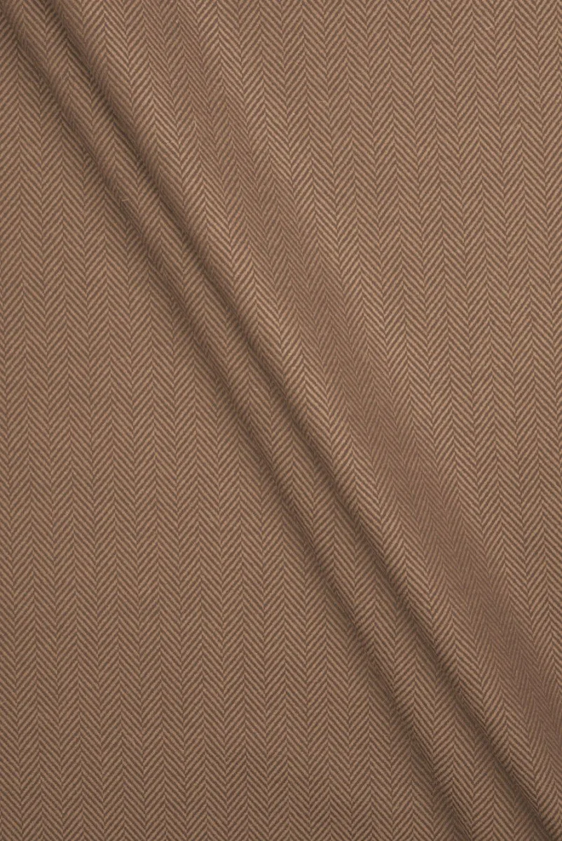 Italská kostýmová látka utkaná z verginové vlny s příměsí polyesteru s motivem rybí kosti. Vzor je k dispozici ve dvou odstínech béžové a tvoří svislé pruhy široké 2 cm. Tkanina podzim-zima, neelastická s těsnou vazbou. Ideální pro ušití podzimního saka, obleku nebo šatů.