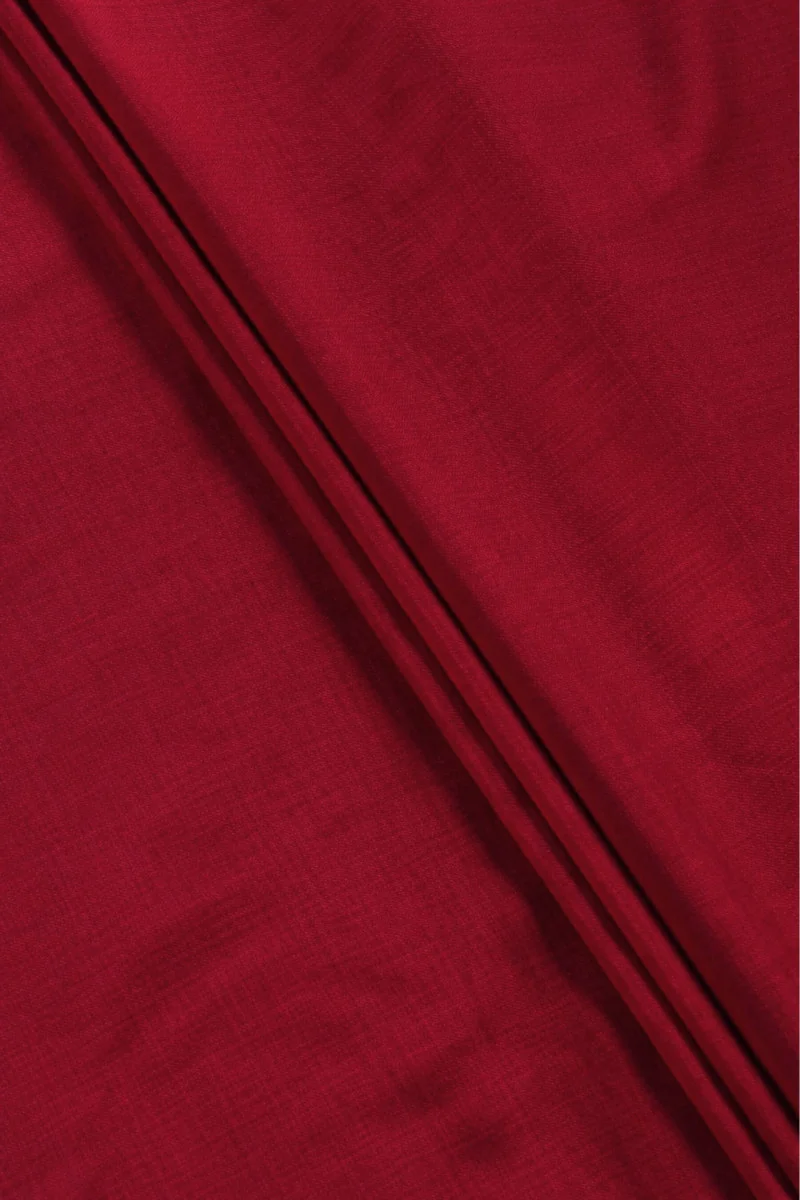 Italská 100% vlněná látka v tmavě červené barvě. Materiál je tenký, mírně průhledný a nepružný. Má charakteristickou vazbu ve tvaru svislých pruhů, je měkká a příjemná na dotek s jemným leskem. Je ideální na šití halenky, košile, šatů nebo sukně s podšívkou a šálou. Velmi originální produkt.