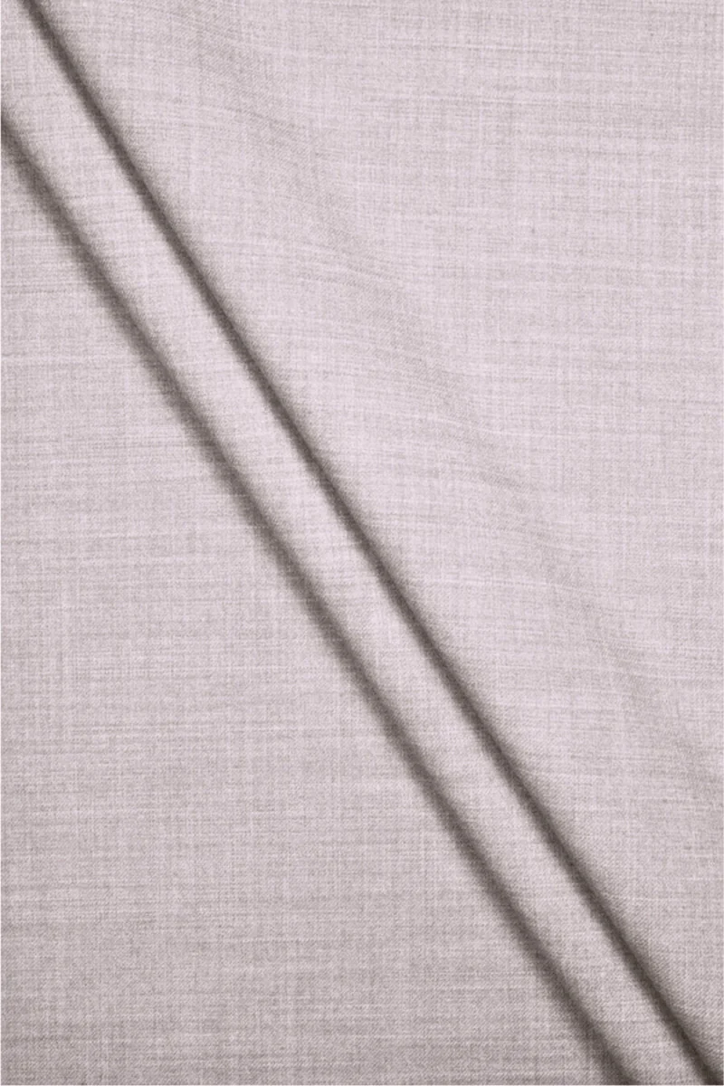 Italská látka z přírodní vlny a bavlny v šedé barvě s kapkou světle fialové. Materiál má melanžovou vazbu, je neelastický a má střední tloušťku. Je vyroben ze dvou barev šedé a světle fialové nitě. Je ideální na šití oblečení jako: oblek, kostým, šaty, sukně nebo kalhoty.