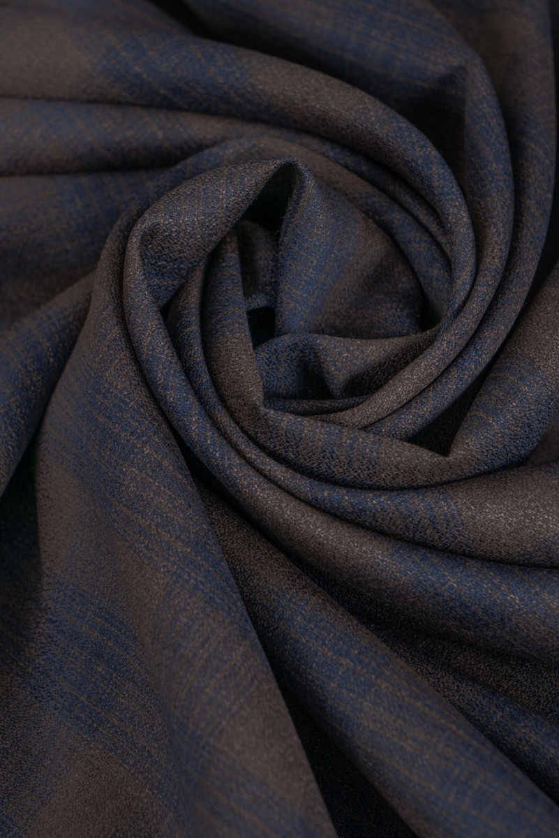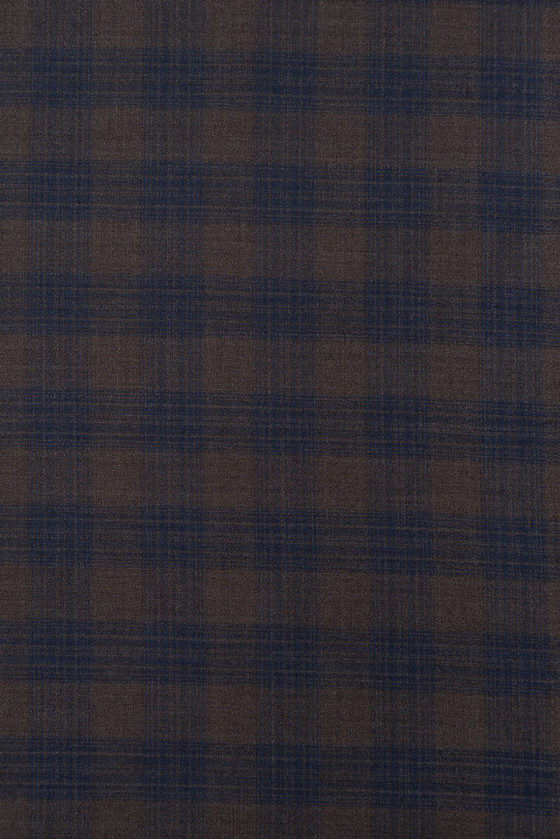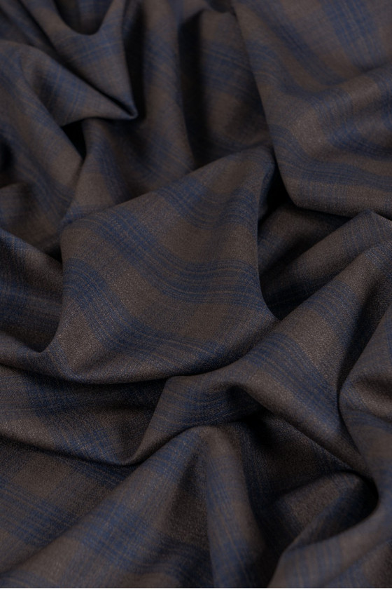 Italská kostkovaná kostýmová látka v tmavě modré a olivové barvě, utkaná ze 100% panenské vlny.